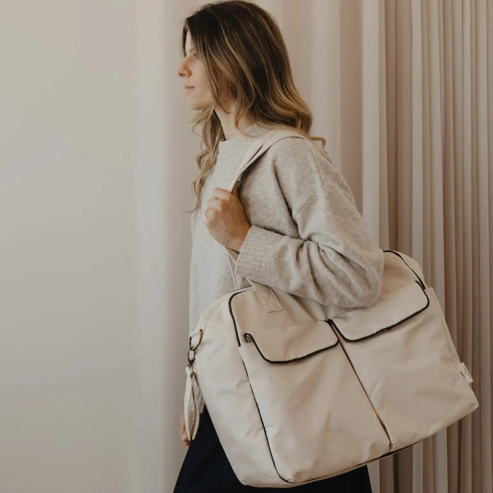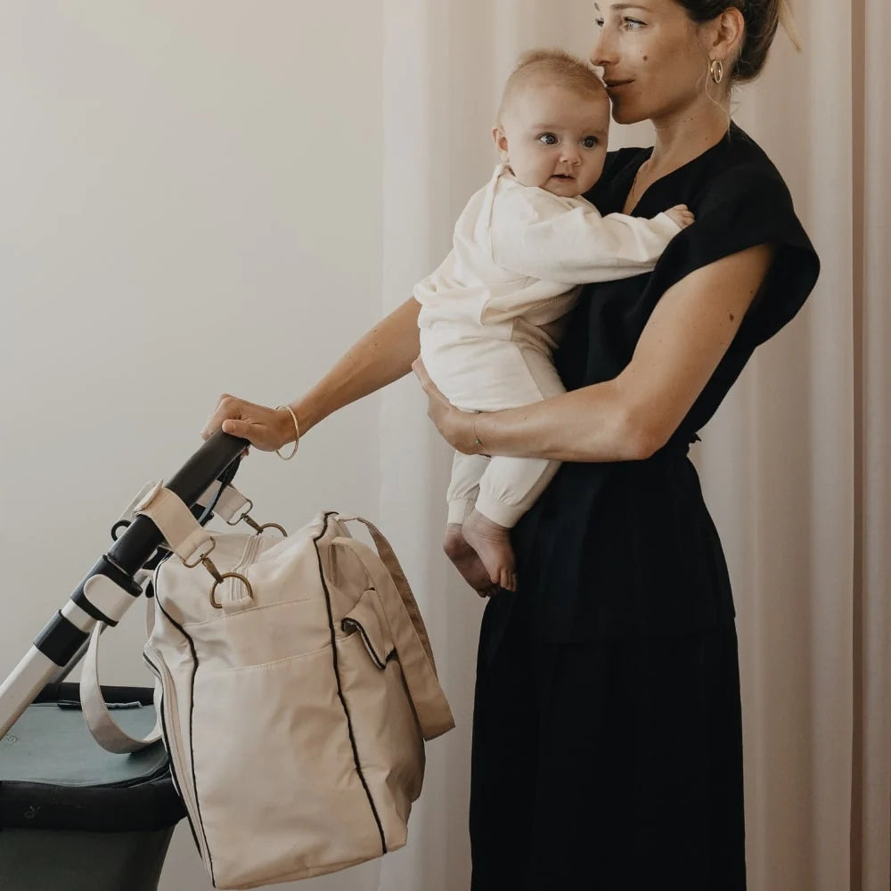 Tasken er skabt i samarbejde med mærket Élhée og kombinerer lethed, elegance og praktiske løsninger, der gør hverdagen med babyen nemmere.