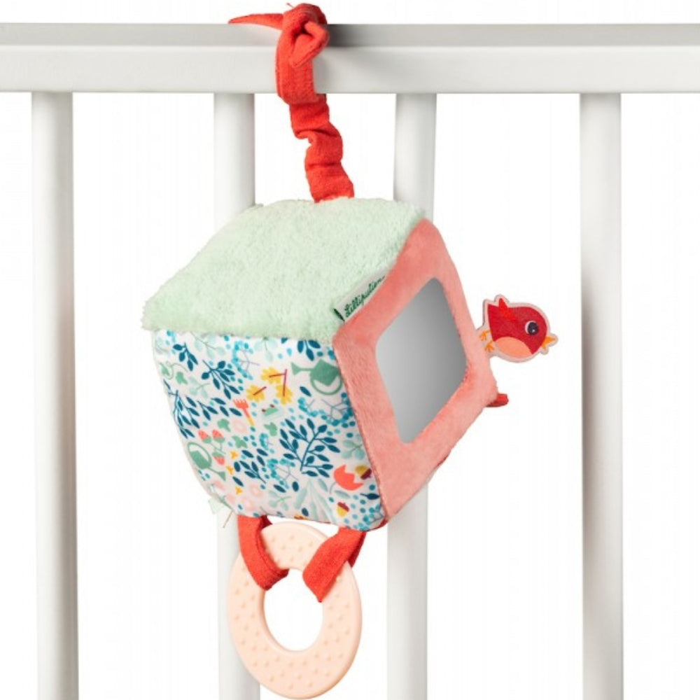 Alice Vixen-kollektionens aktivitetskube fra det belgiske mærke Lilliputiens er et multifunktionelt blødt legetøj designet til de yngste opdagelsesrejsende.