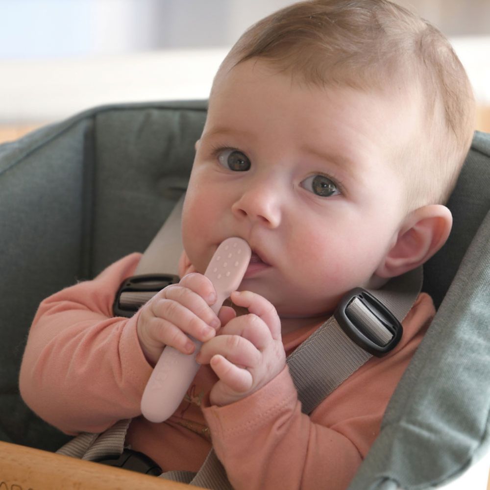 De er designet til babyer fra 4 måneder og understøtter de første forsøg på at spise som voksne og hjælper fra omkring 6-8 måneder med at udvikle uafhængighed ved måltiderne.