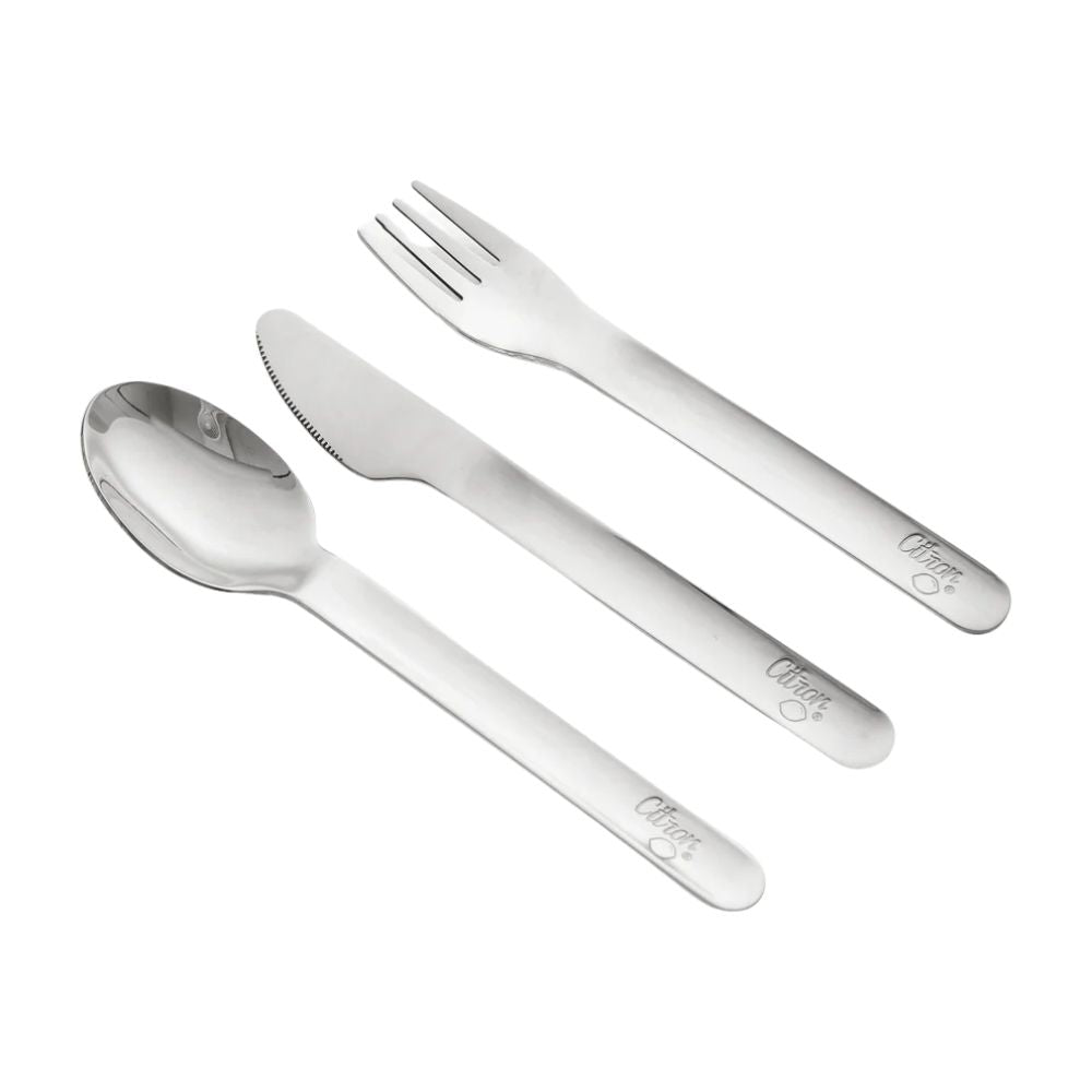 Praktisk og stilfuldt bestik i en let silikonetaske er ideelt til familier på farten - til skole, gåture, picnic eller rejser.