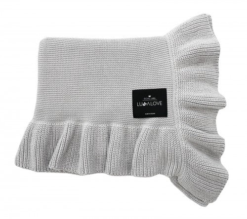 Dejligt baby tæppe med flæser i grå farve fra Lullalove.