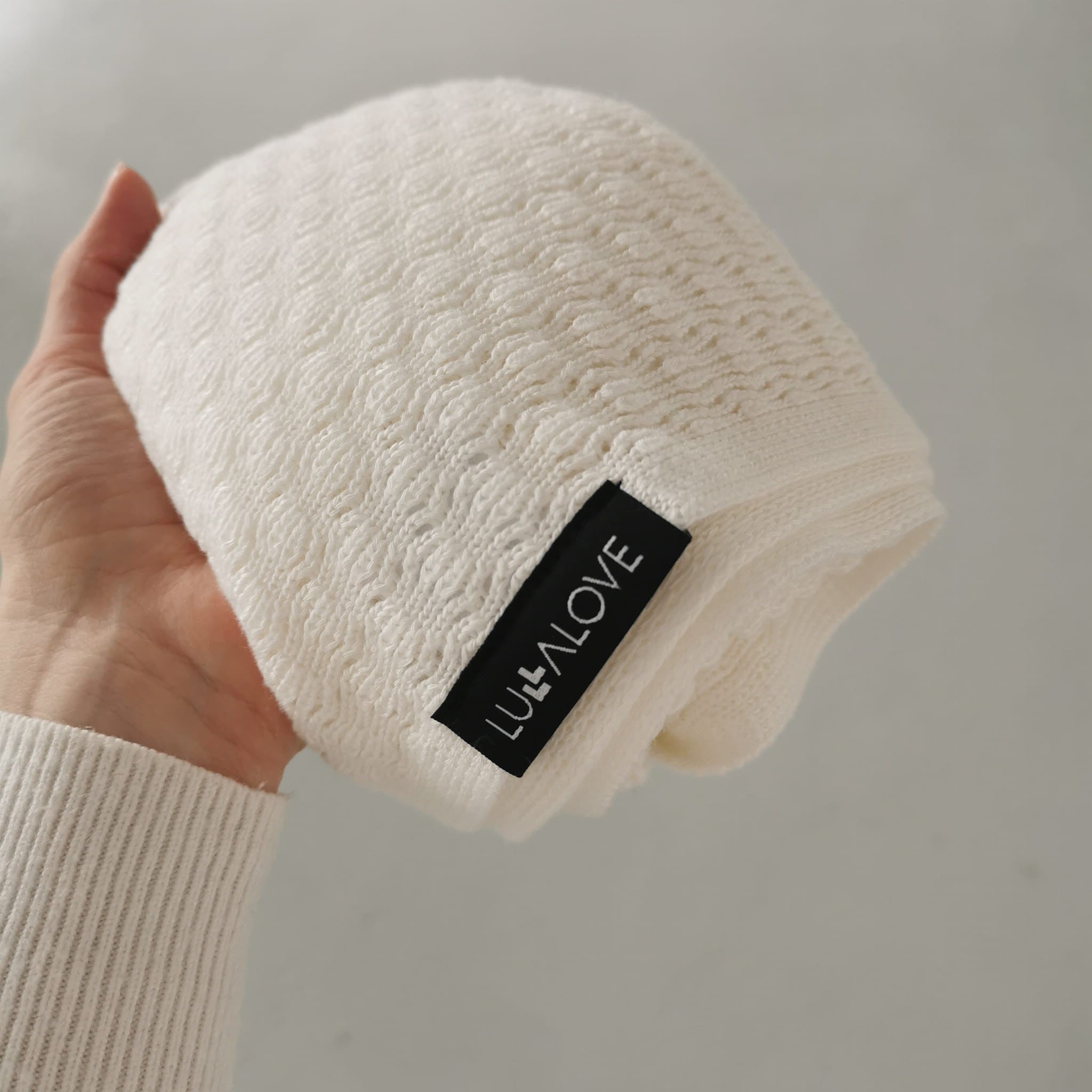 Bambustæppet fra Lullalove giver en passende termoregulering, som giver varme, men ikke fører til overophedning, ånder og transporterer fugt væk.