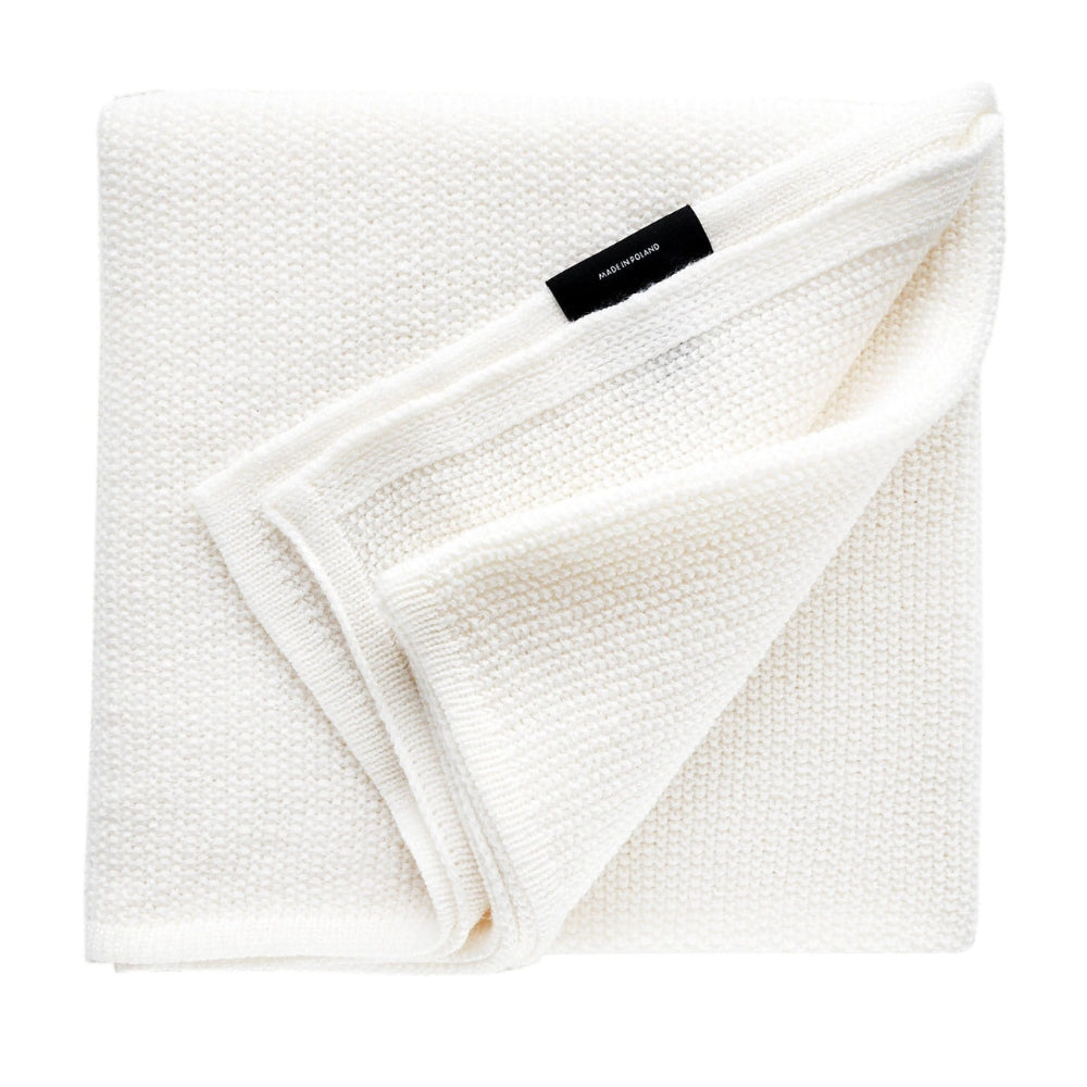Det bløde merinouldstæppe kan også bruges som baby-slynge i hvidt fra LullaLove.
