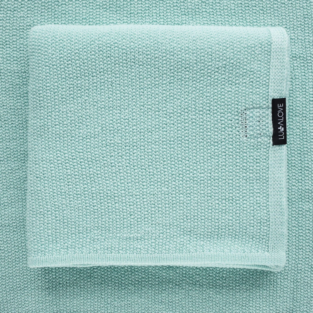 Det bløde merinouldstæppe kan også bruges som baby-sjal i mintfarve fra LullaLove.