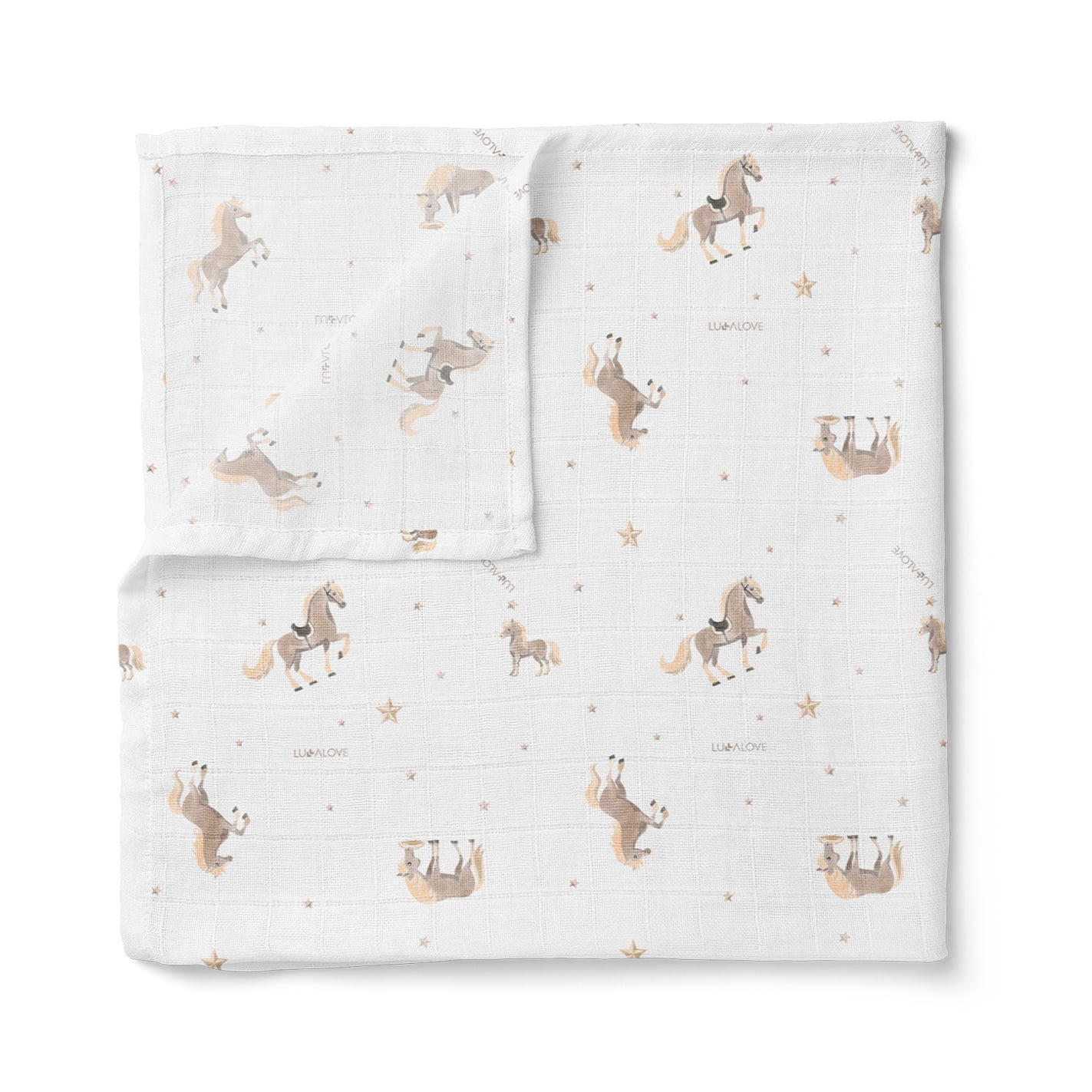 LullaLove Letvægts sengetæppe i musselin 150x200 cm Heste