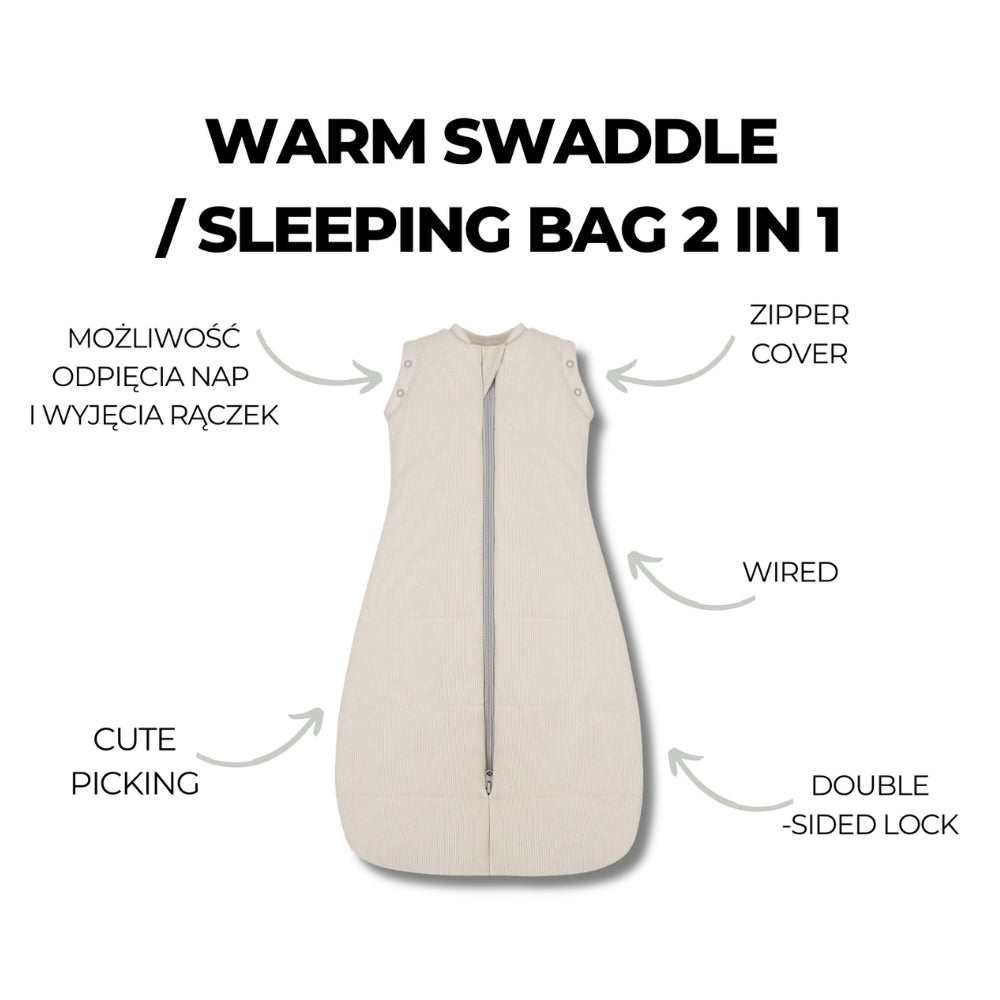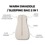 De aftagelige ærmer gør det muligt at tilpasse sovedugen til forskellige behov: på koldere dage kan den bruges som en beskyttende sovedug, og når ærmerne fjernes, kan den omdannes til en behagelig sovepose.