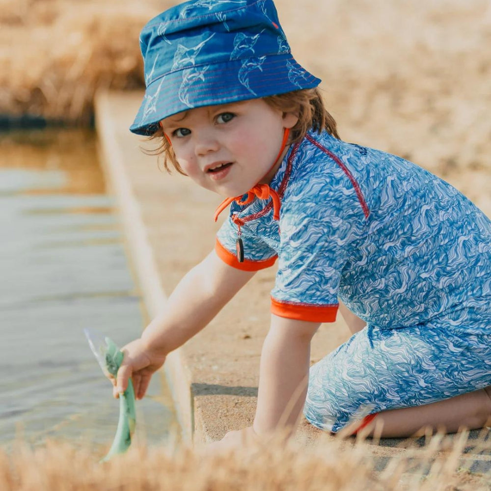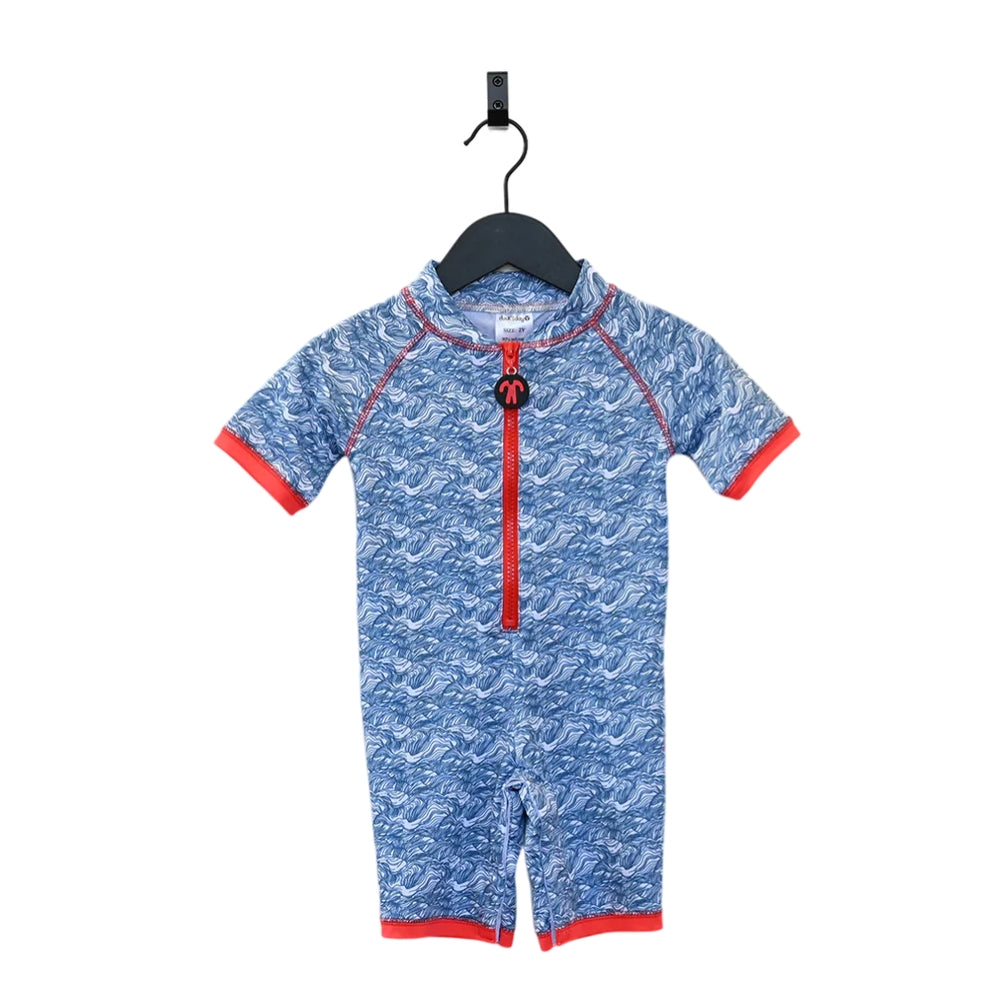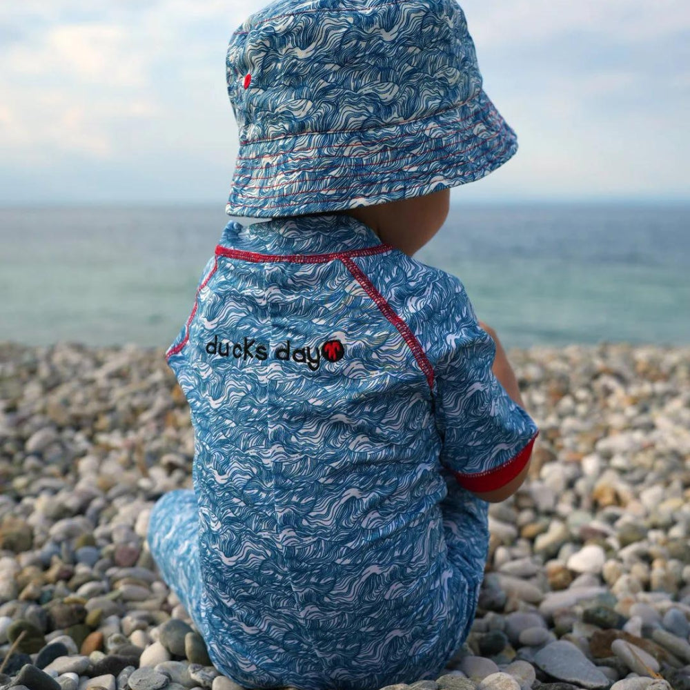 Ducksday-babydragten er hurtigtørrende og åndbar og er modstandsdygtig over for klor og saltvand.