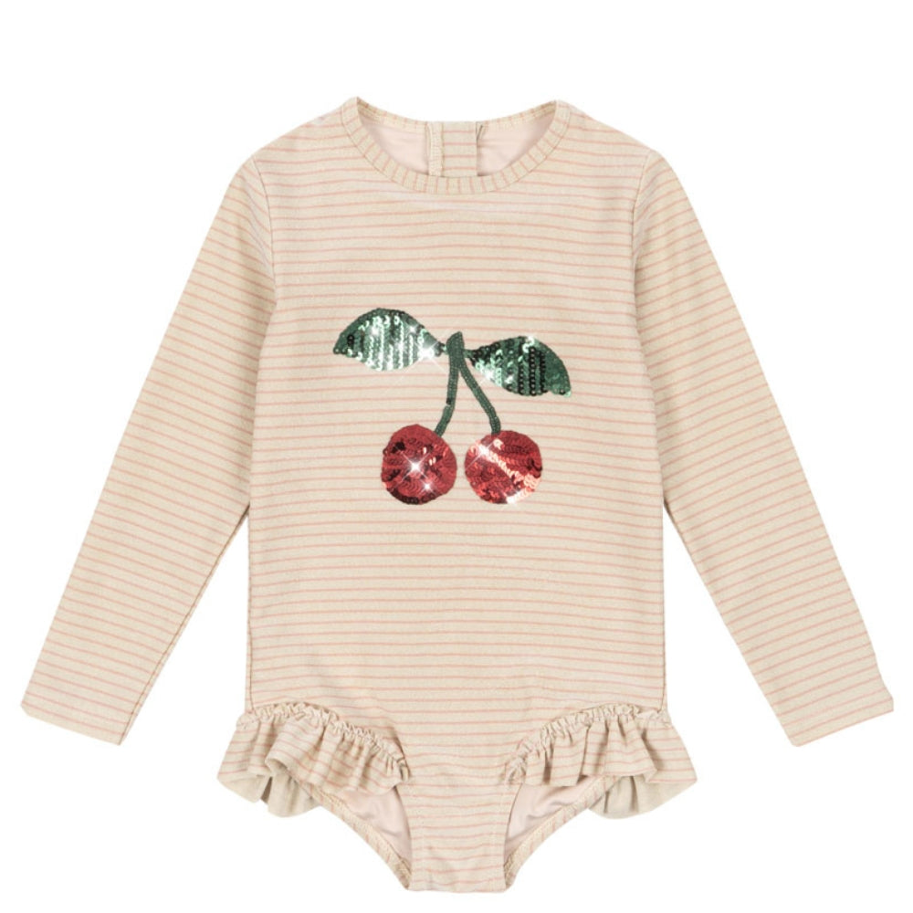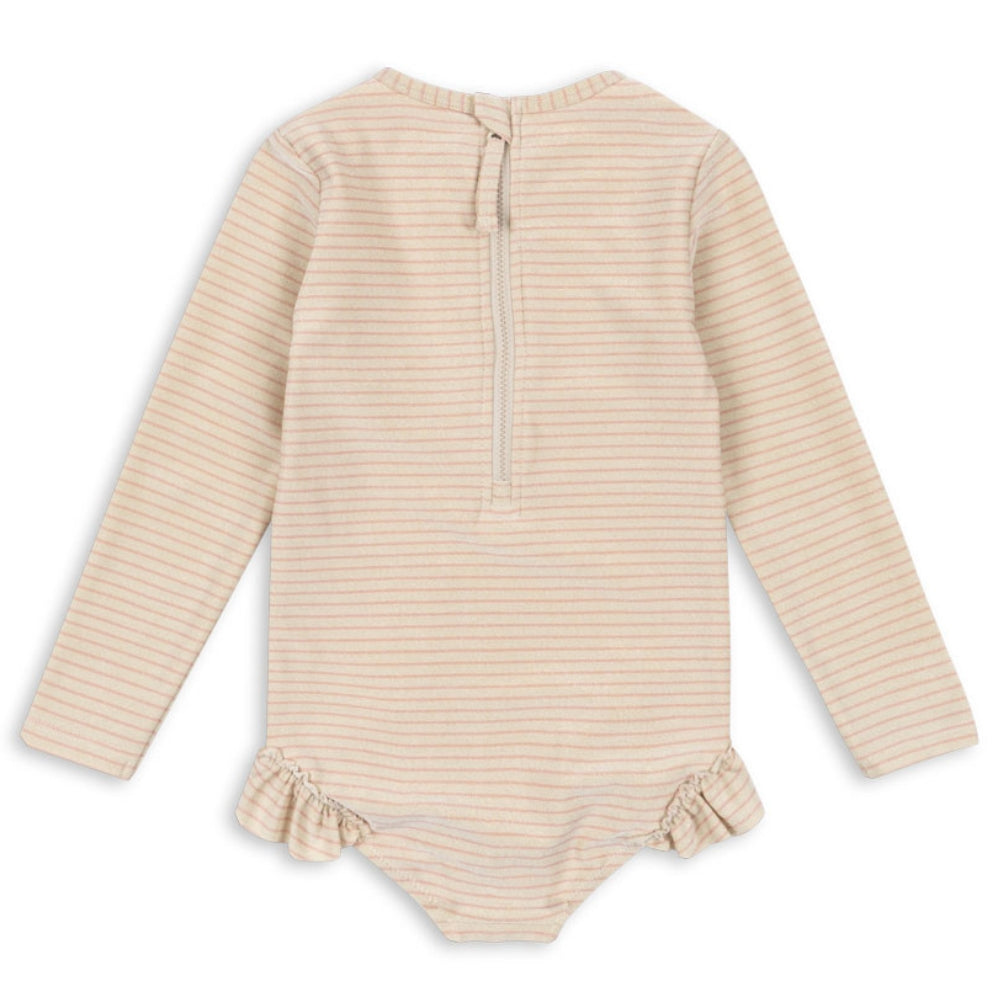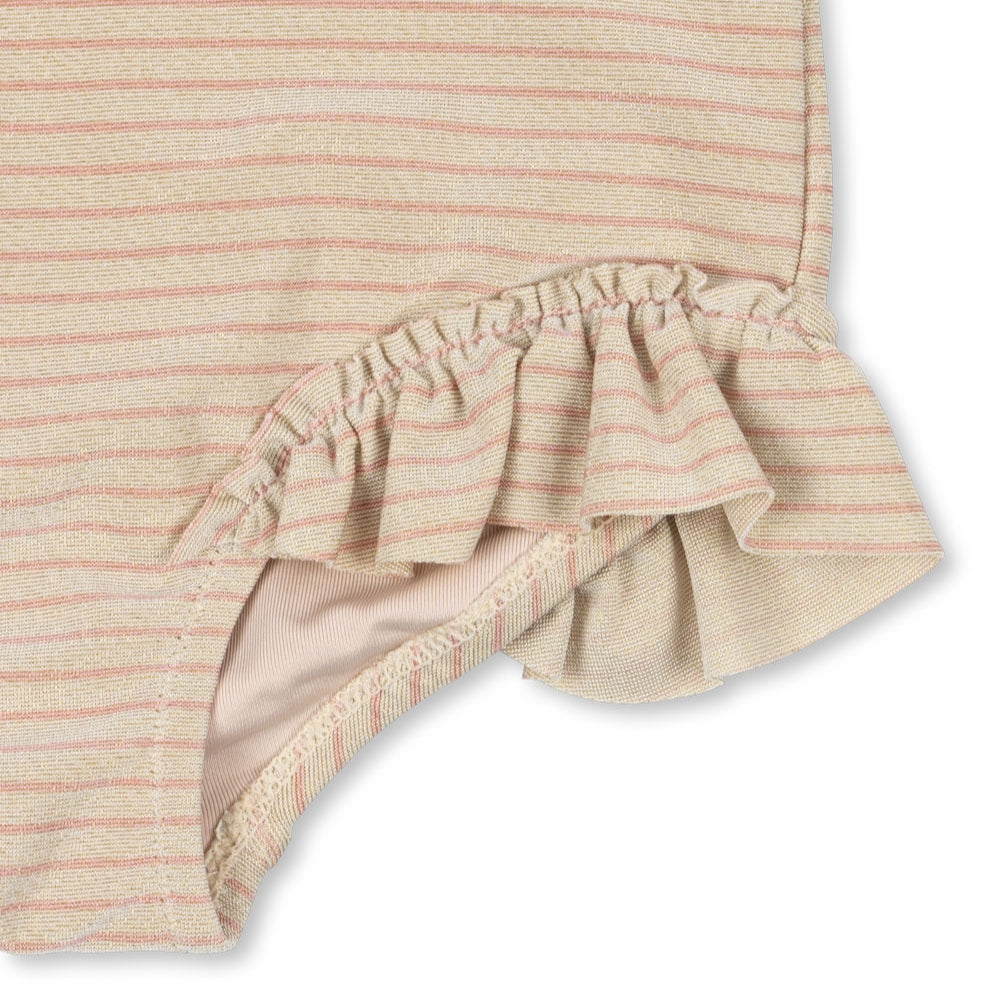 Konges Slojd badedragt i ét stykke til piger med flæser Jade Rose Stripe