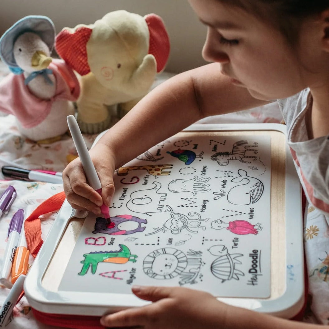 Den er den perfekte måde at stimulere børns kreativitet og læring på hjemme, på farten og når man besøger familien.