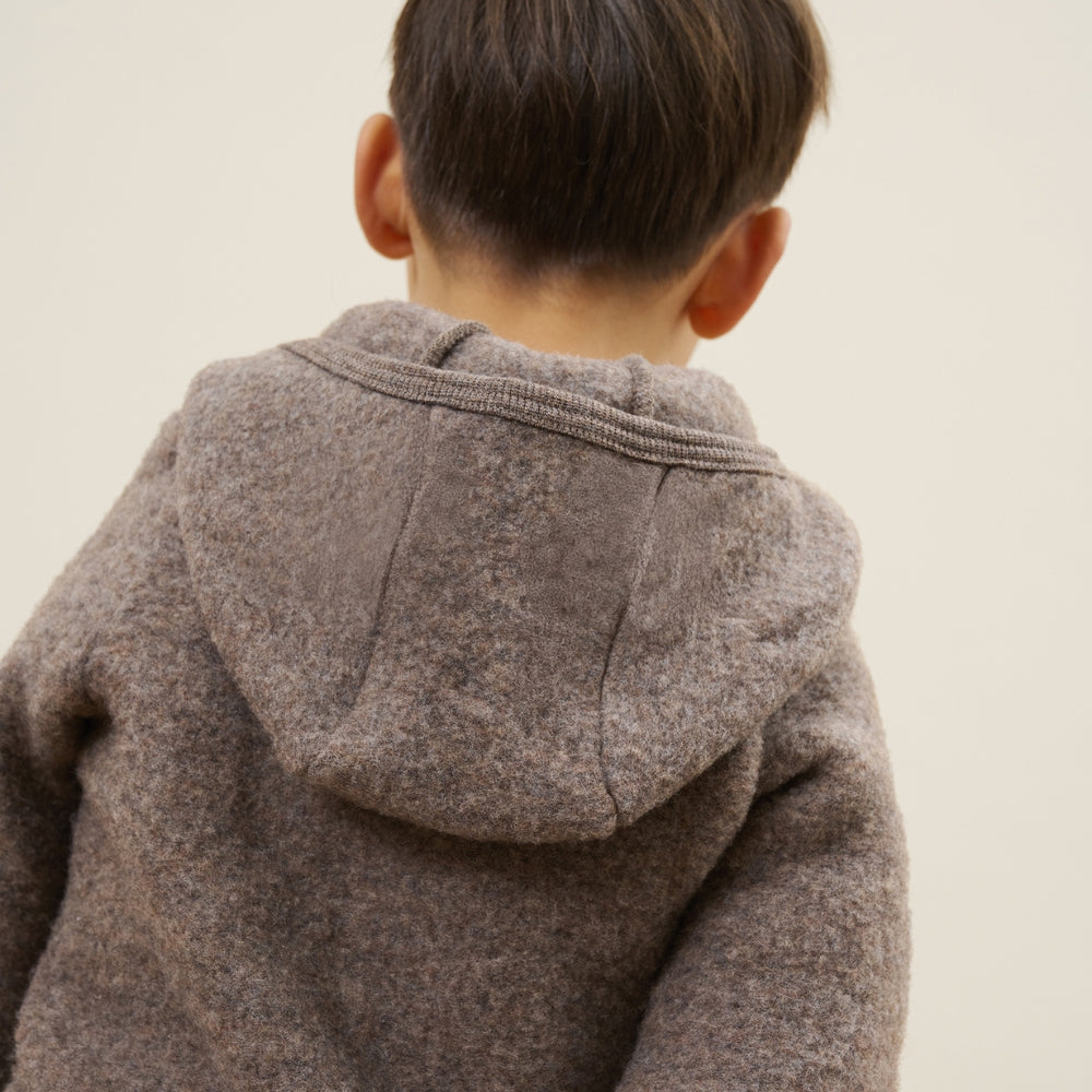 Huttelihut børnejakke i uld, brun melange