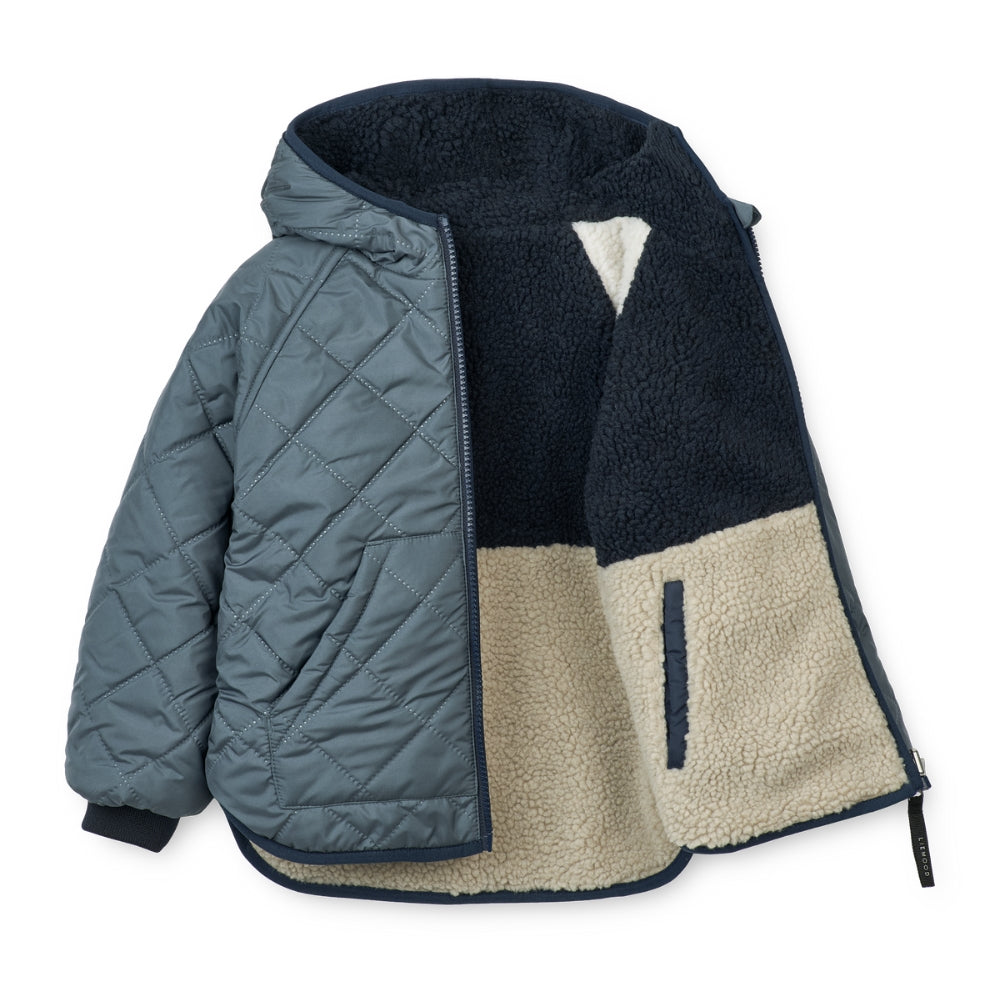 Det dobbeltsidede design af Liewood-drengjakken gør den til et godt valg til overgangssæsoner – den kan bæres alene eller som et ekstra lag under regntøj eller softshells fra Liewood.
