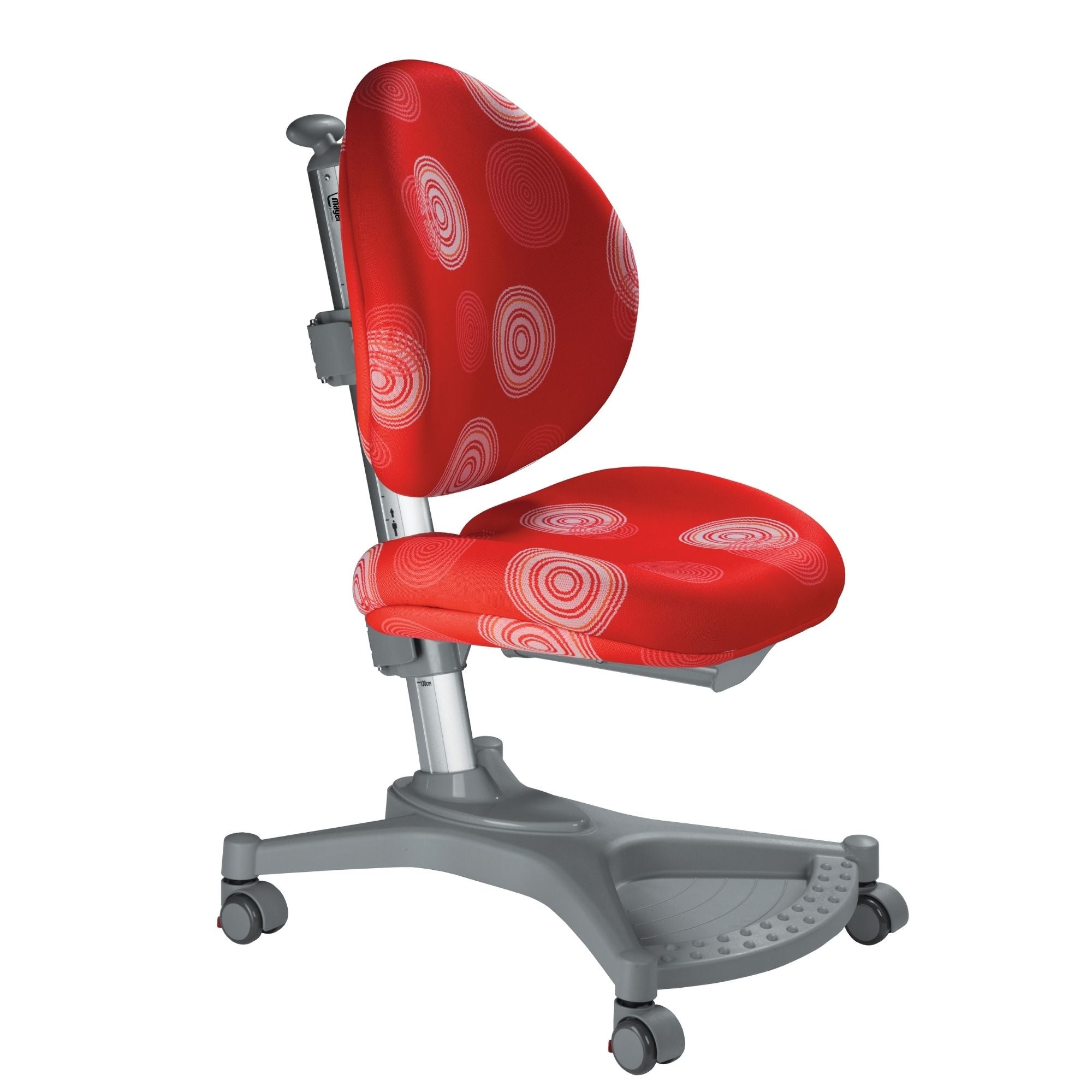 , en ergonomisk stol af høj kvalitet,der vokser med dit barn MyPony i rødt med et mønster af hjul fra mærket Mayer er det ideelle køb til ethvert børneværelse. Den sikrer en korrekt kropsholdning, som beskytter dit barn mod at udvikle holdningsfejl.
