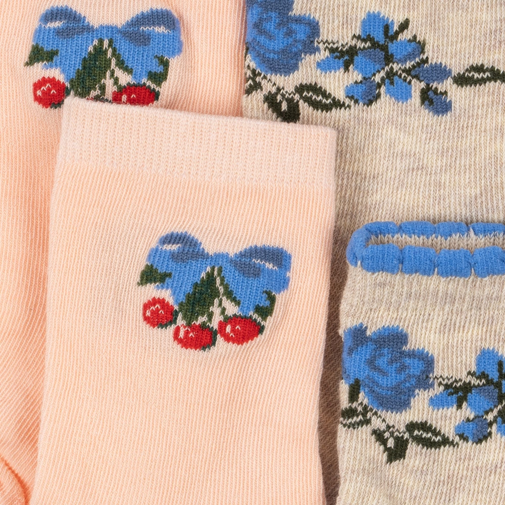 Det delikate jacquardmønster med kirsebær og blomster giver dem et sødt, piget touch, der er karakteristisk for Konges Slojd-mærket.