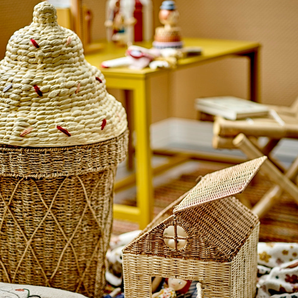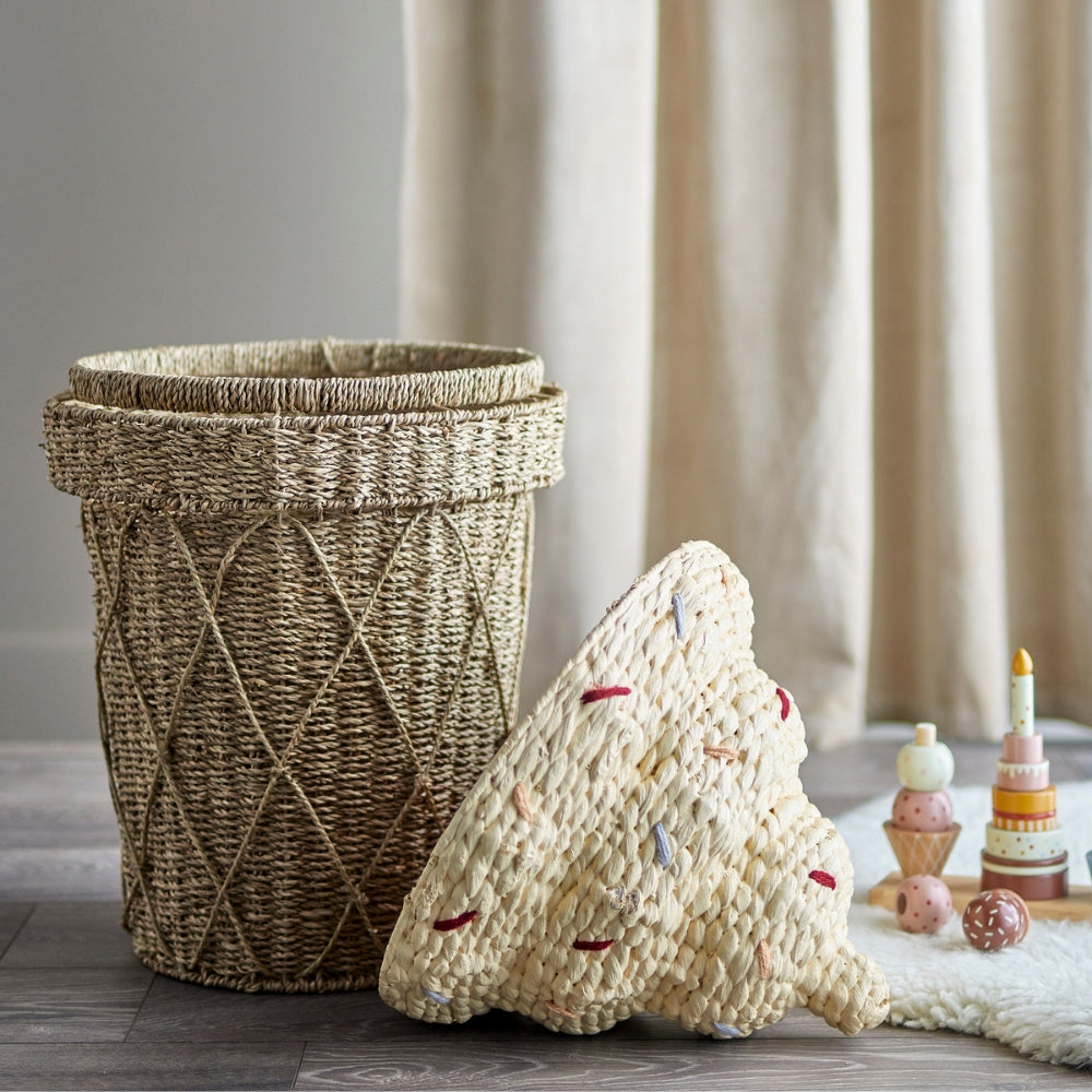Bloomingville Isformet legetøjskurv med låg Cillie Water Seagrass