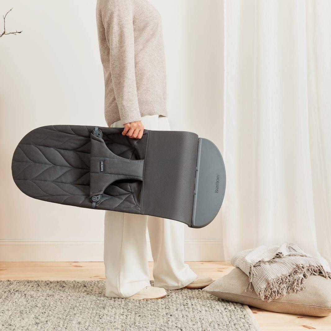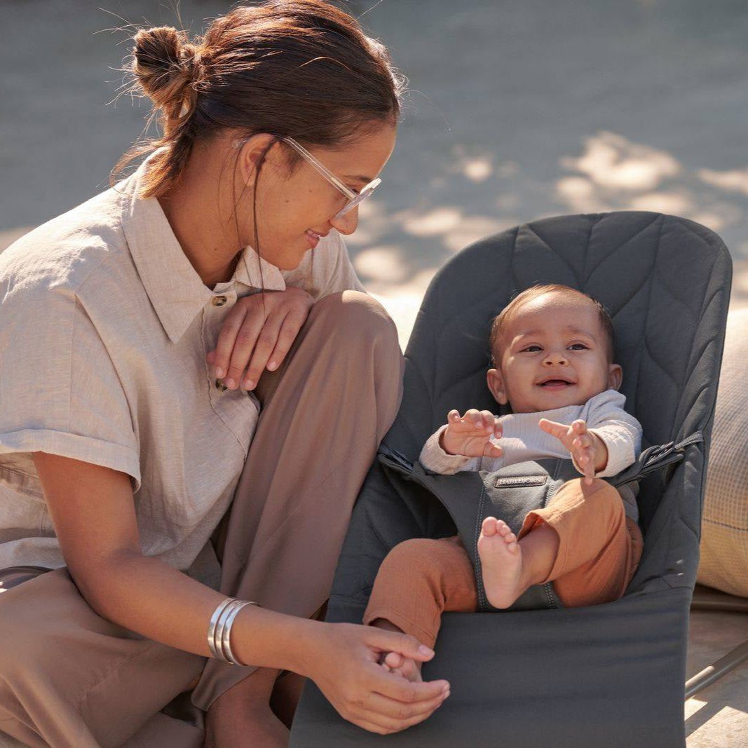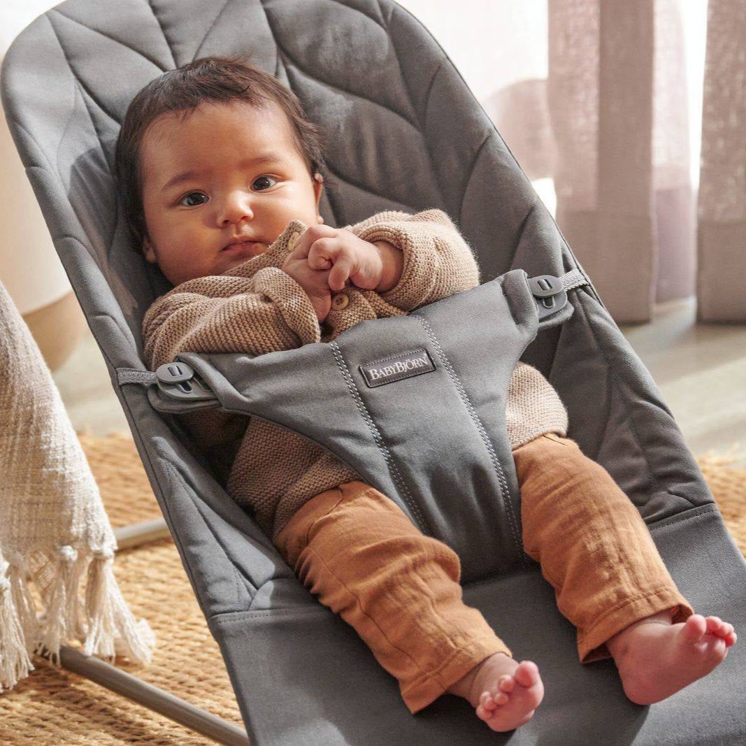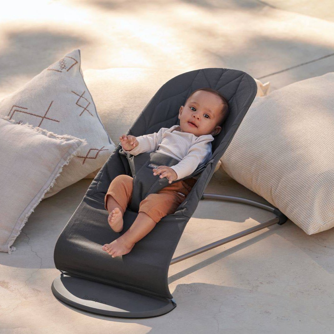 BabyBjorns liggestol er et hyggeligt sted at hvile og lege, og den bevæger sig med dit barns naturlige bevægelser.