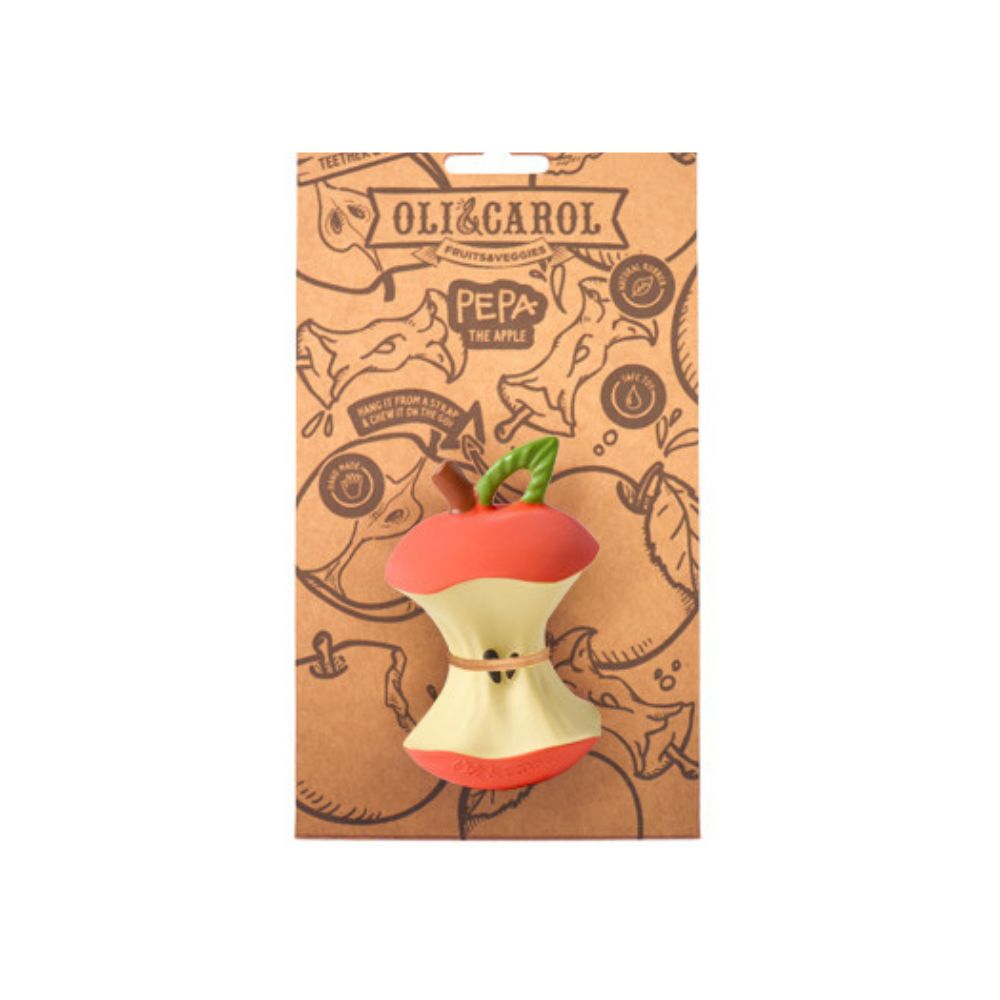 Oli&Carol's Apple Pepa bidering af naturgummi er en perfekt designet bidering, som blidt masserer barnets gummer og støtter dets udvikling.