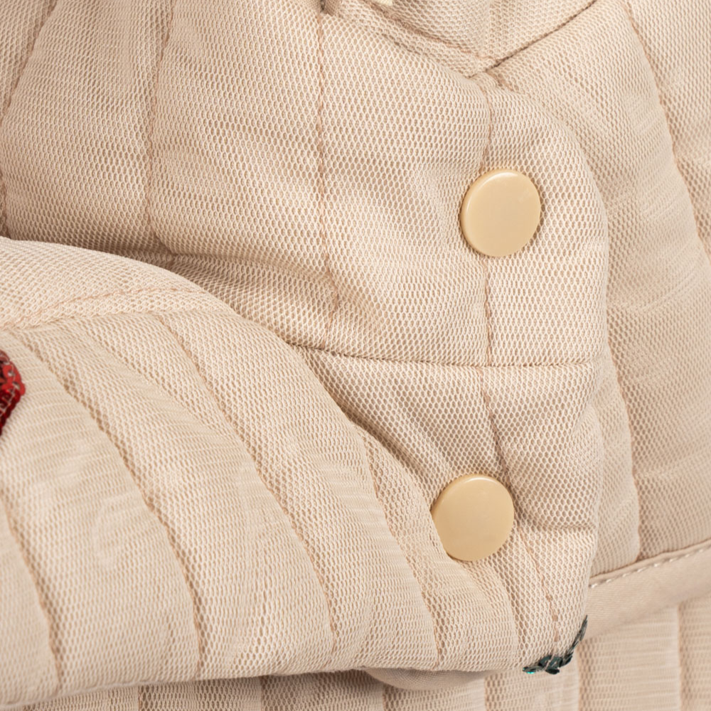 Denne dukkevogn har fire store, robuste hjul, bløde håndtag og quiltet stof med en diskret kant, der giver den et meget elegant look.