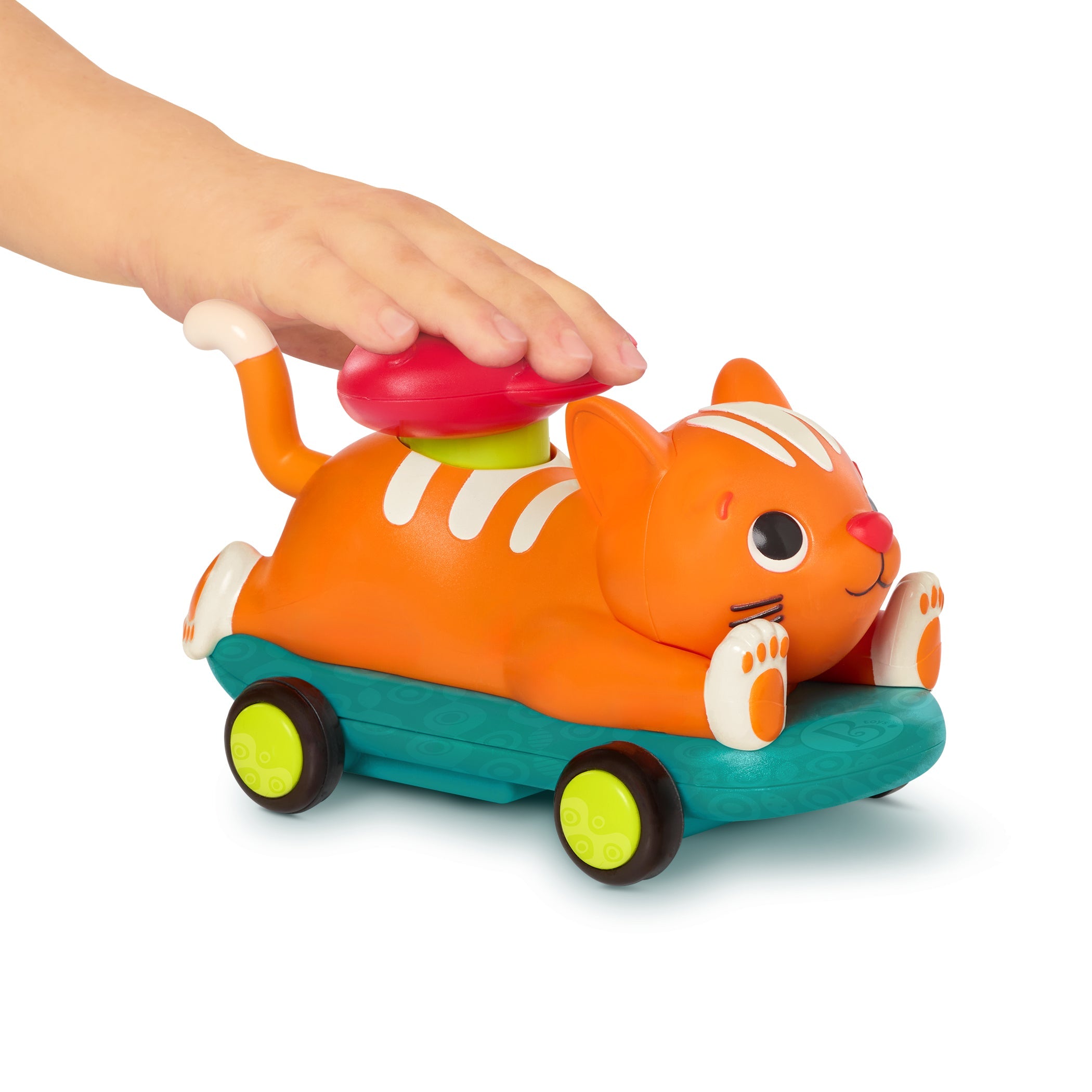 B.Toys PawMobiles Push&,Go-biler er et energifyldt duo: Tryk blot på køretøjet ovenfra, så sætter hunden og killingen afsted i jagten, mens de logrer med halen.