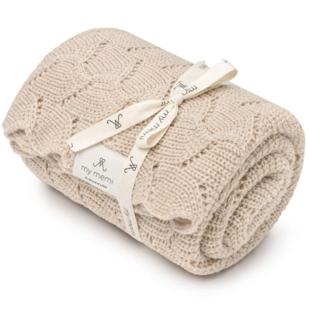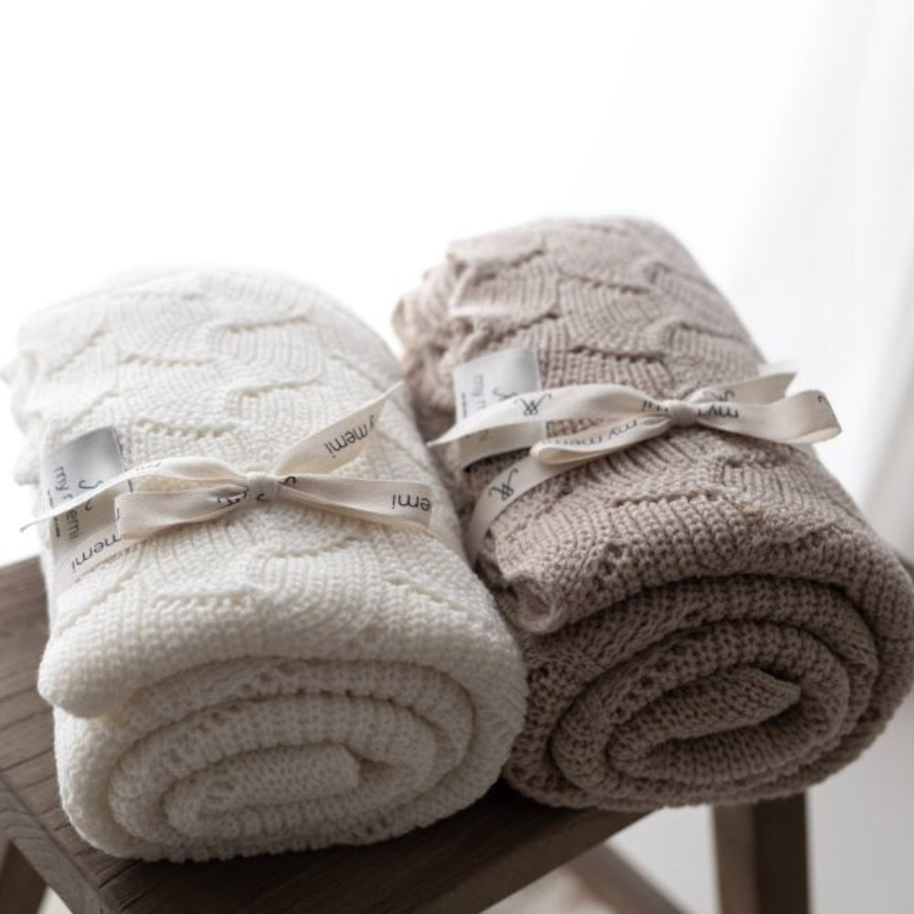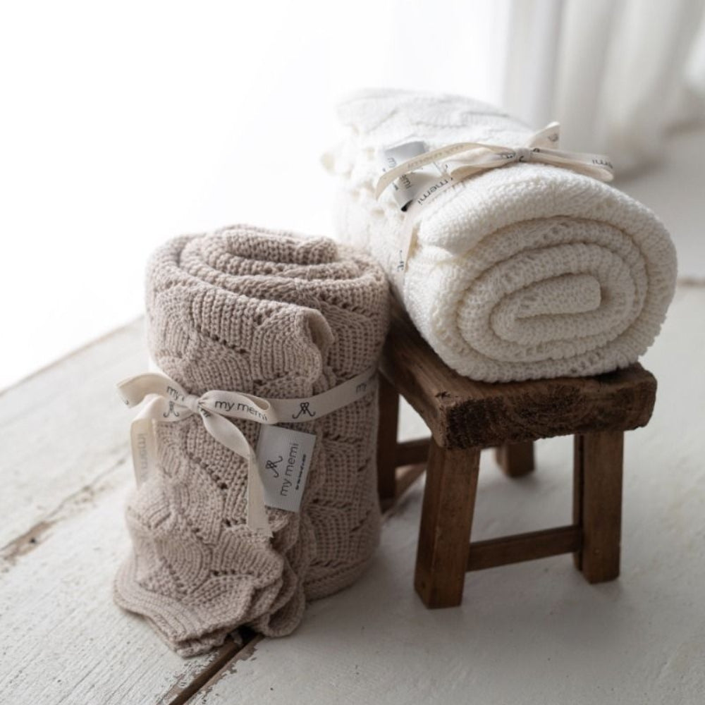 Baby-sjal i merinould, varm beige, premium-kollektion fra Memi.