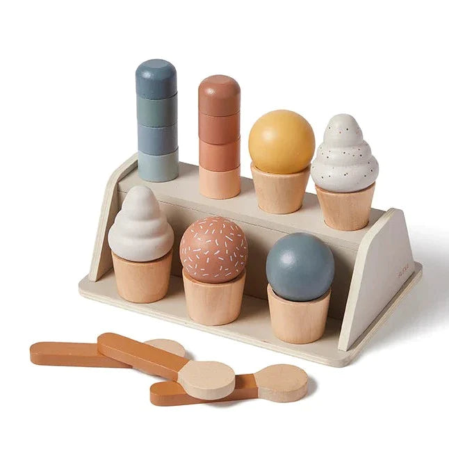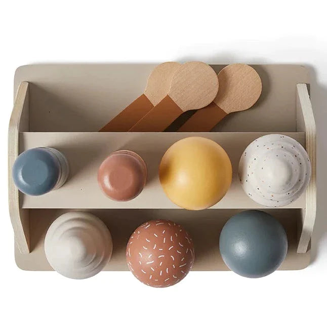Med dette naturlige is-sæt i træ kan dit barn servere is på varme sommerdage.