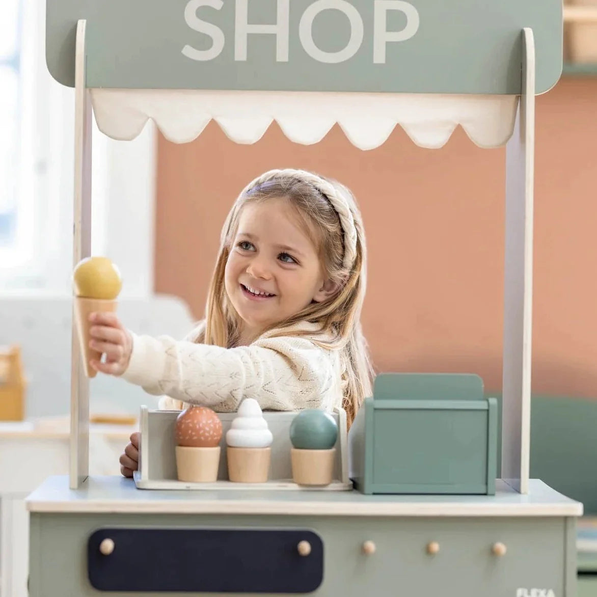 Som alt andet legetøj fra Flexa er is-sættet lavet af massivt, naturligt træ.