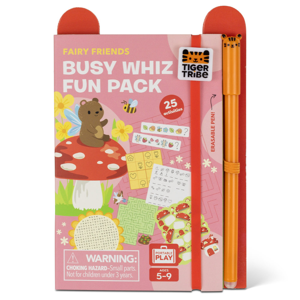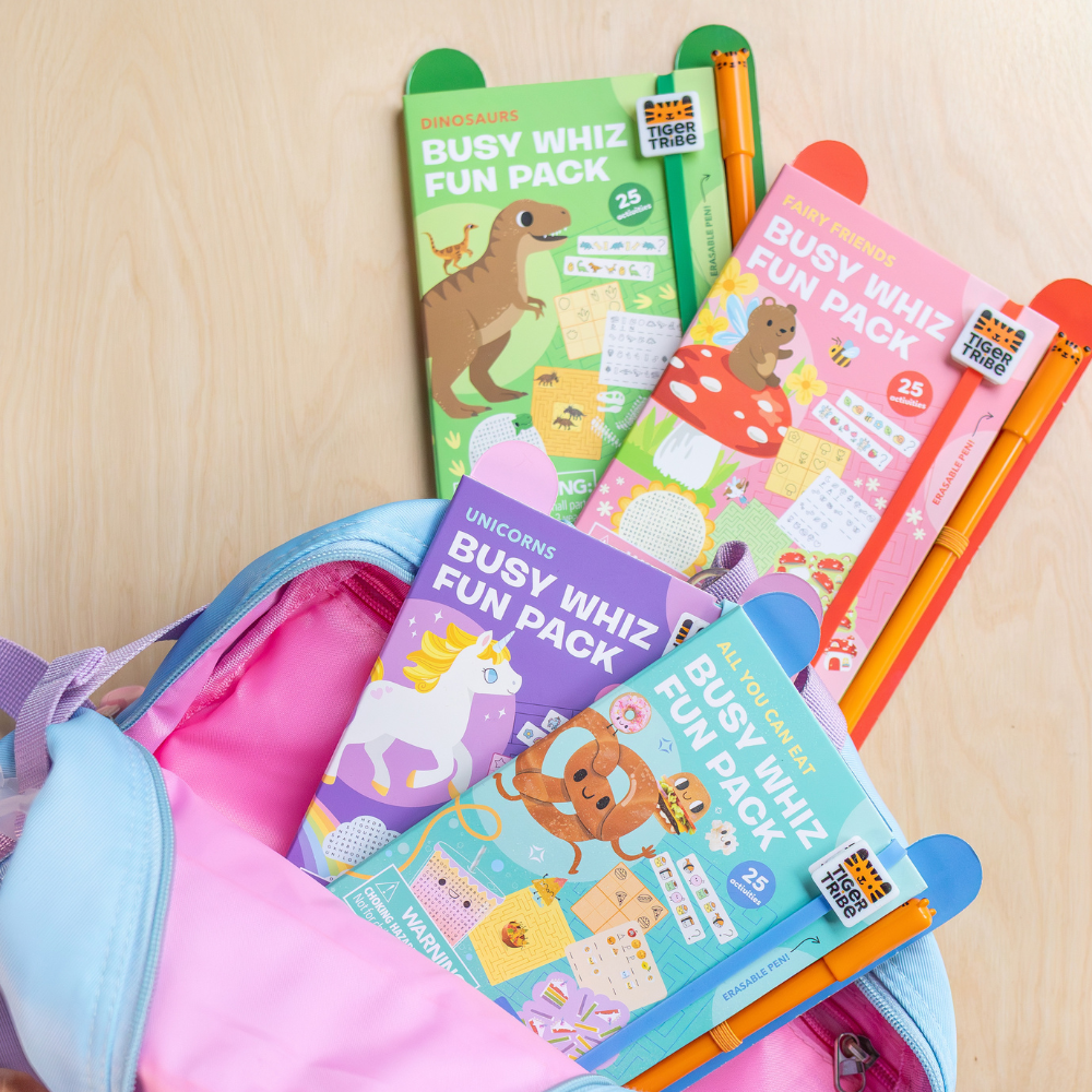 Dette er Tiger Tribes praktiske forslag til kreative øjeblikke derhjemme og på farten. Bogen passer i en rygsæk eller håndtaske – perfekt til bilen, flyet og alle andre steder, hvor du har brug for meningsfuld, stille underholdning.