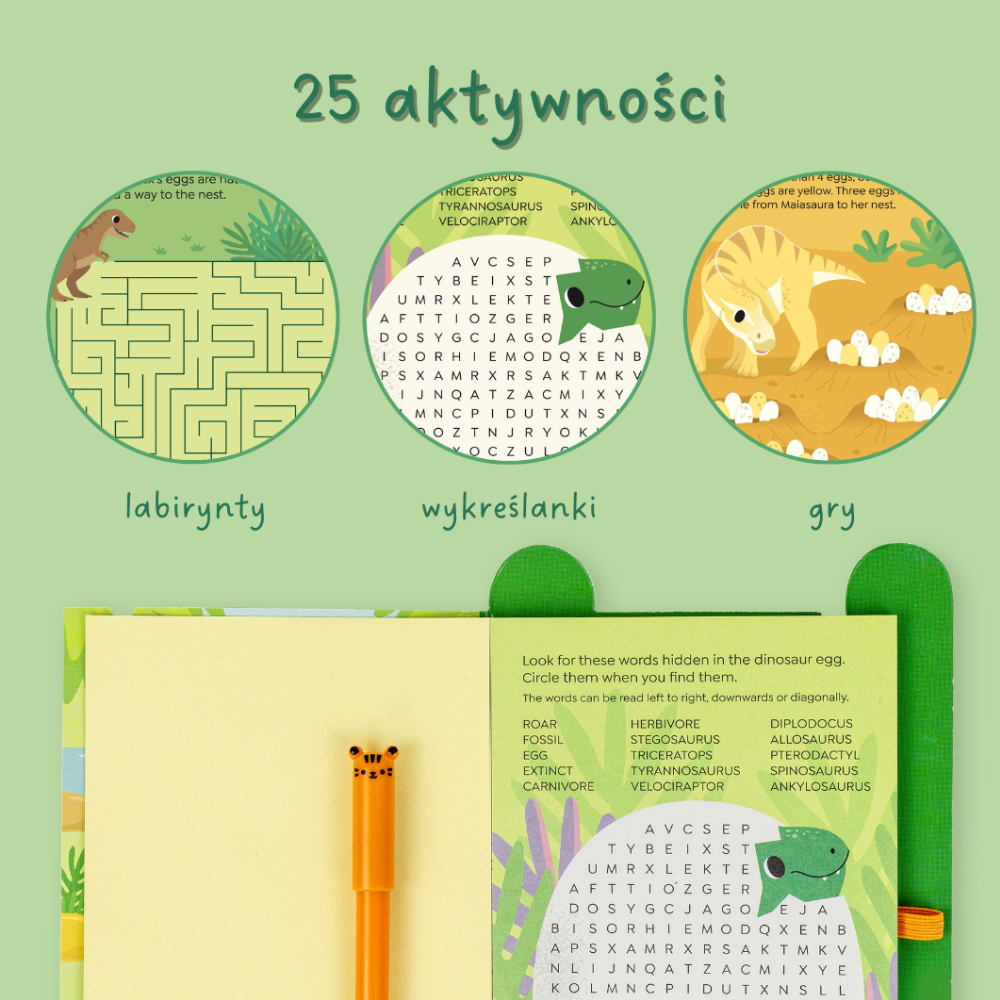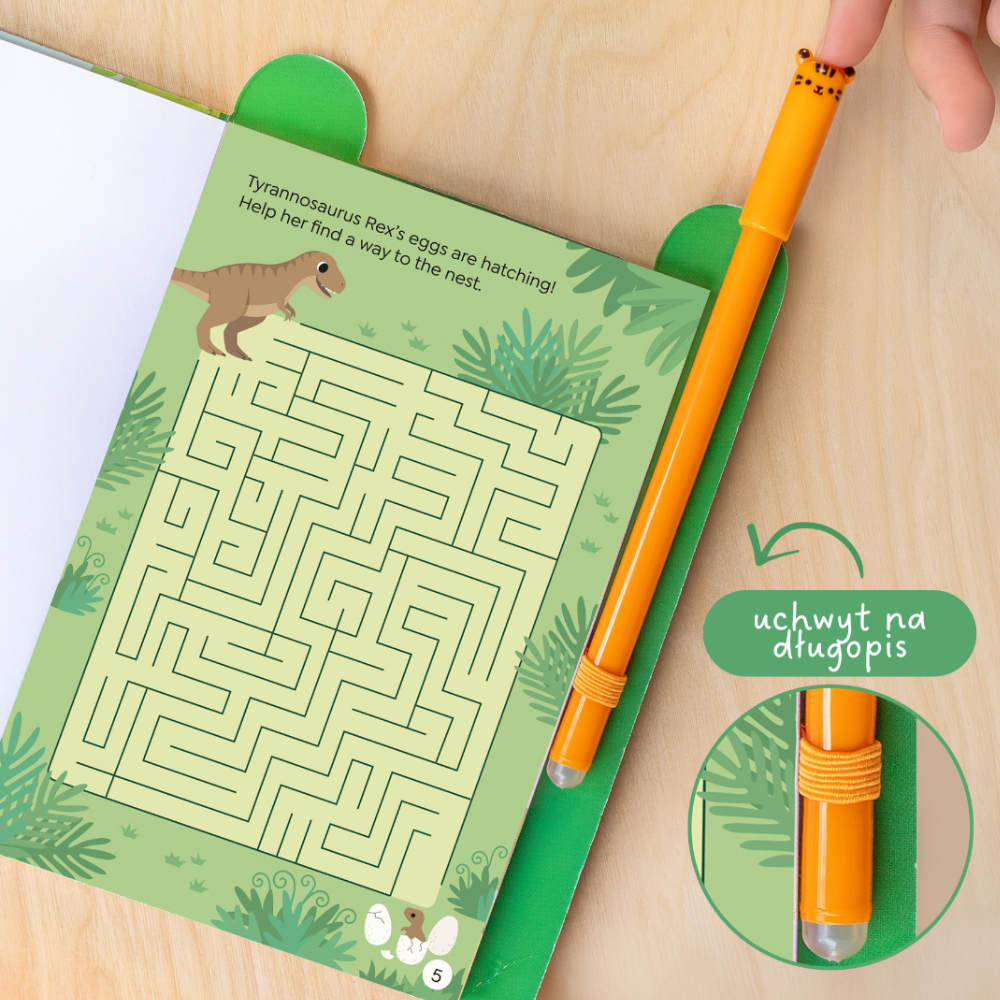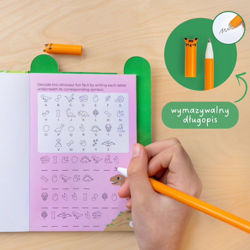 Inde i bogen venter labyrinter, gåder, ordspil og logiske gåder – alt sammen samlet på ét sted med temaet de elskede dinosaurer.