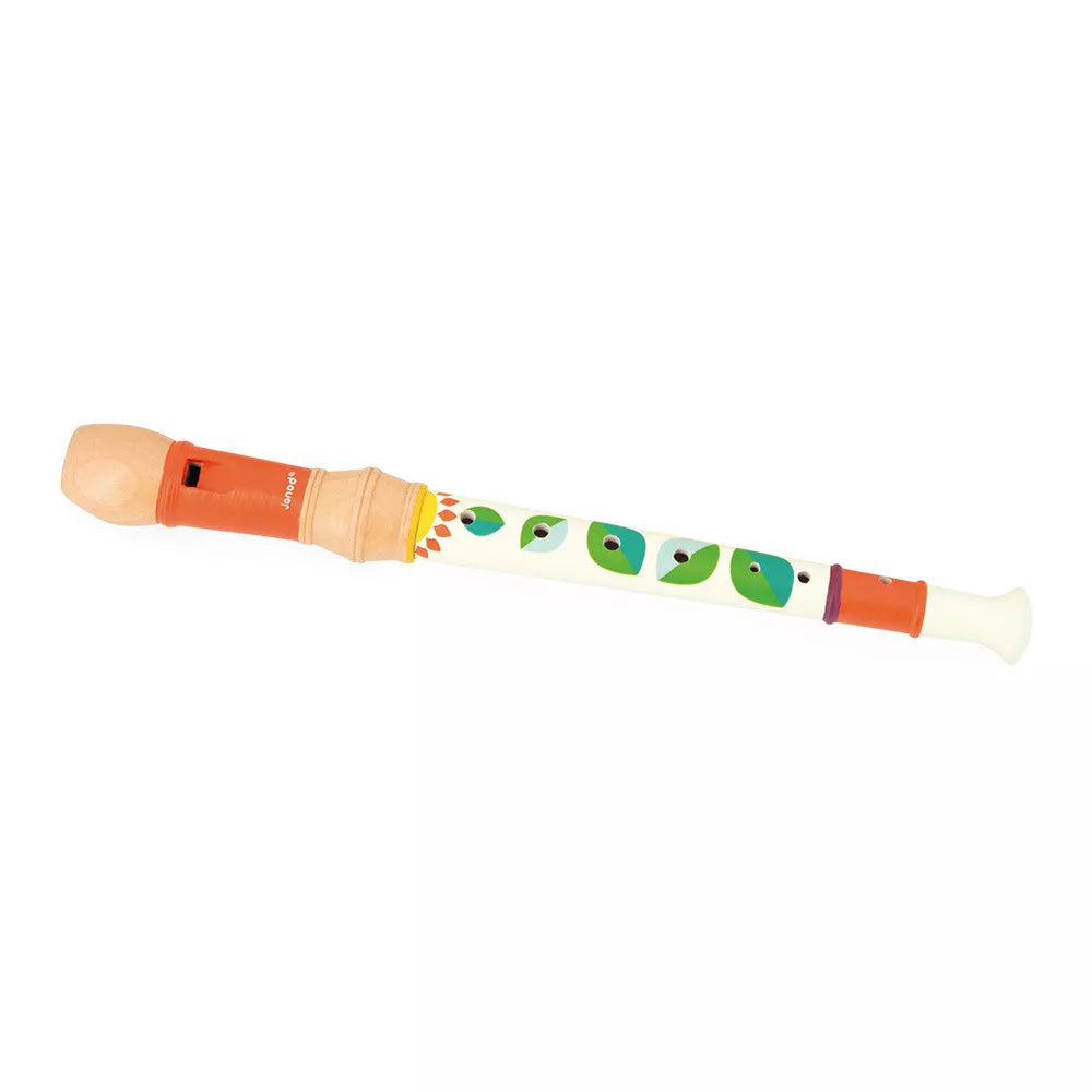 Janod-sættet indeholder: fløjte, 2 kastagnetter, xylofon og tamburin.