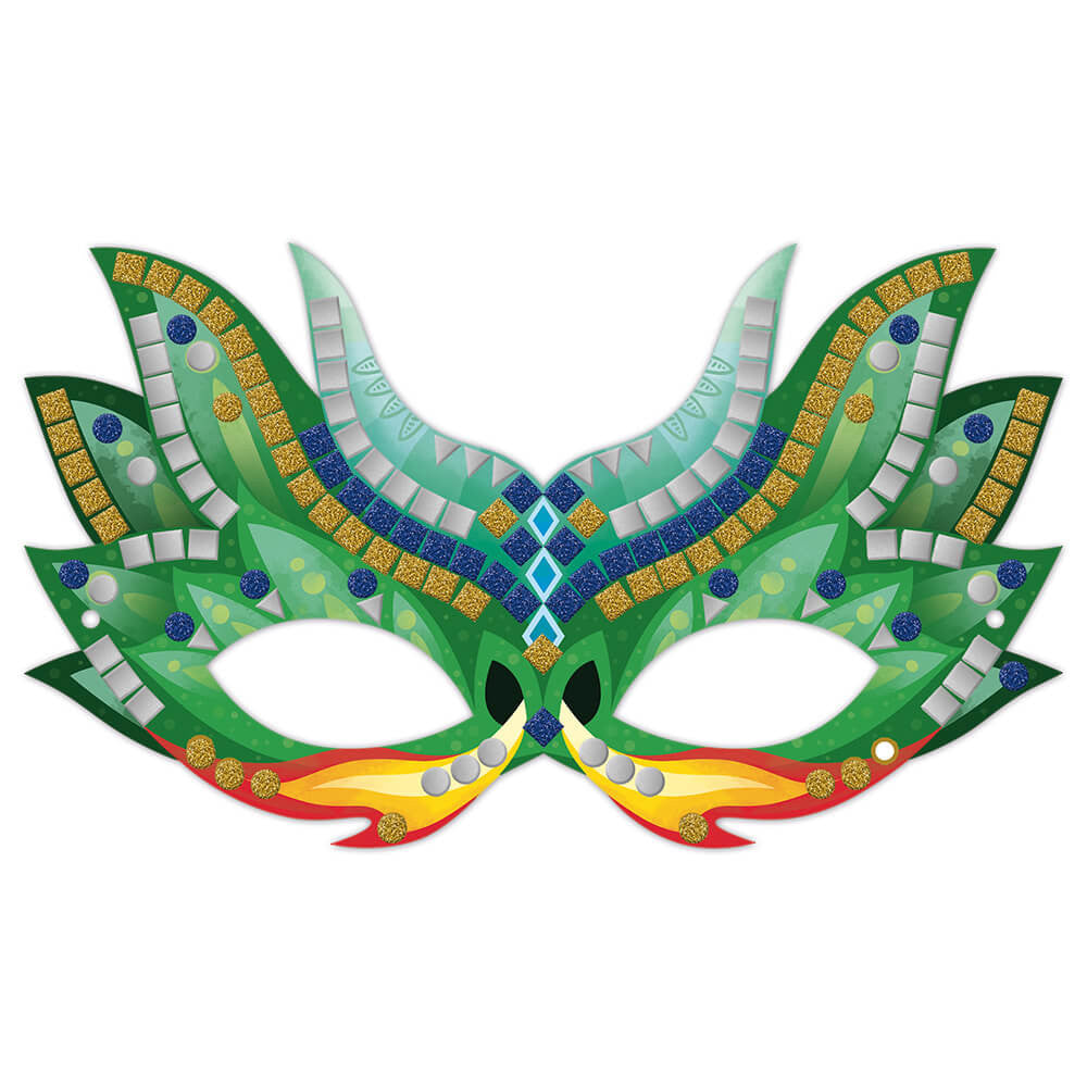 Sættet indeholder: 6 masker, 900 stykker skummosaik i fem farver og 6 elastikker.
