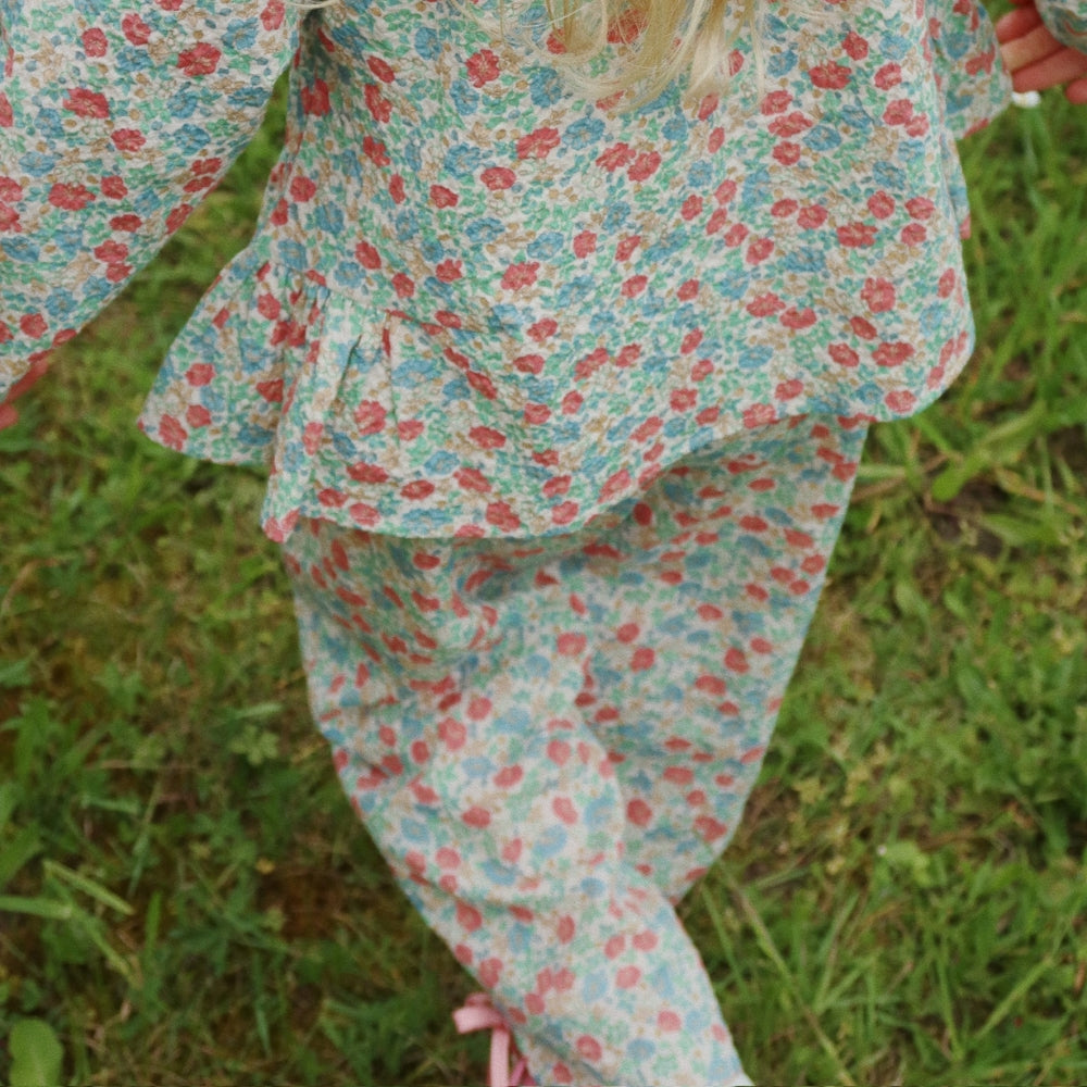 Bukserne til piger er lavet af GOTS-certificeret bomuld af høj kvalitet, og bukserne er hud- og miljøvenlige.