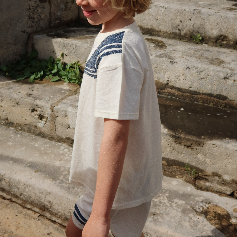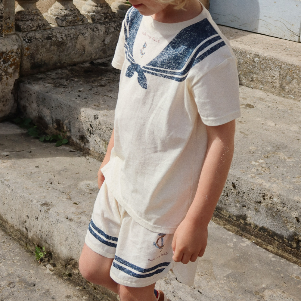 Drengetøjet fra Konges Slojd er den perfekte kombination af funktionalitet og æstetik. Sættet består af en T-shirt og matchende shorts og er lavet af blødt bomuld for maksimal komfort i hverdagen.