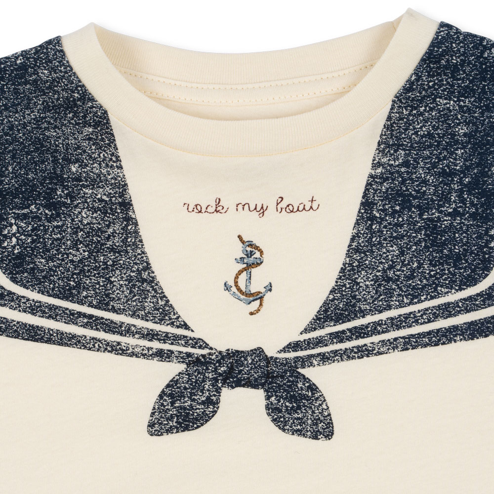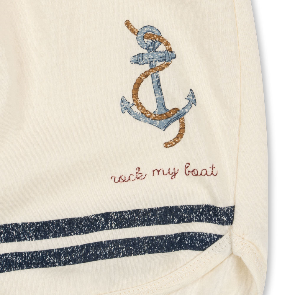 T-shirten har praktiske trykknapper på venstre skulder (op til størrelse 18 måneder), hvilket gør det nemt at klæde de små på, så Konges Slojd-sættet er ekstremt behageligt at have på.