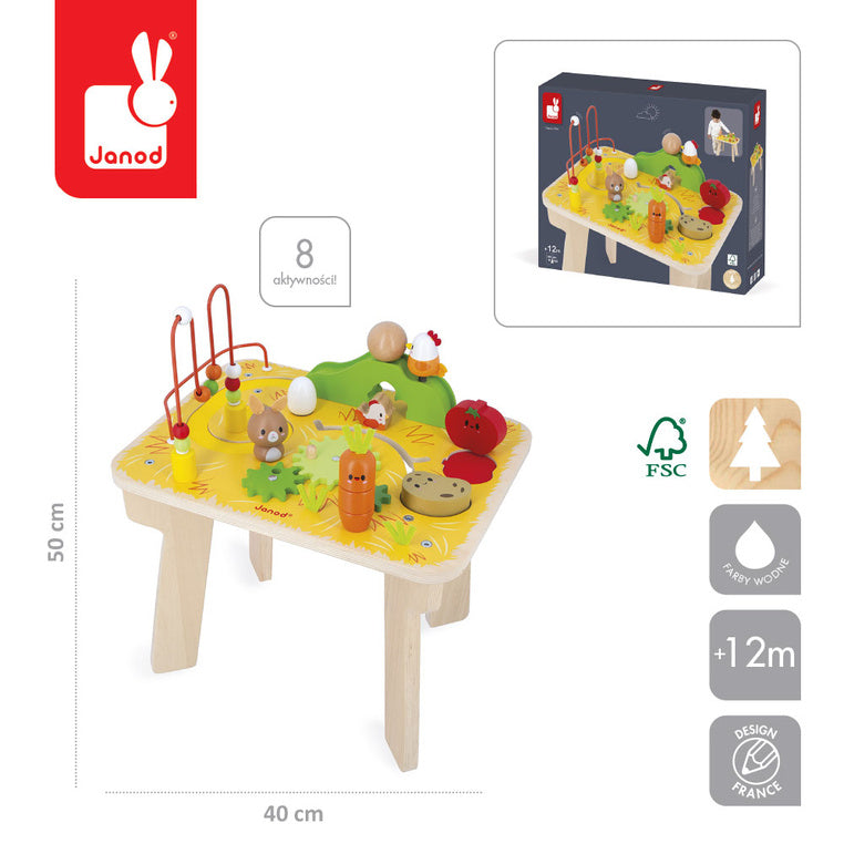 Janod Farm multifunktionelt træbord til læring er det ideelle legetøj til børn fra 1 år.