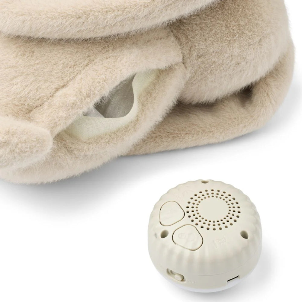 Liewoods summende kanin afspiller otte beroligende lyde, såsom hvid og lyserød støj, fuglesang eller bølgelyd, så den er nem at tilpasse til babyens behov.