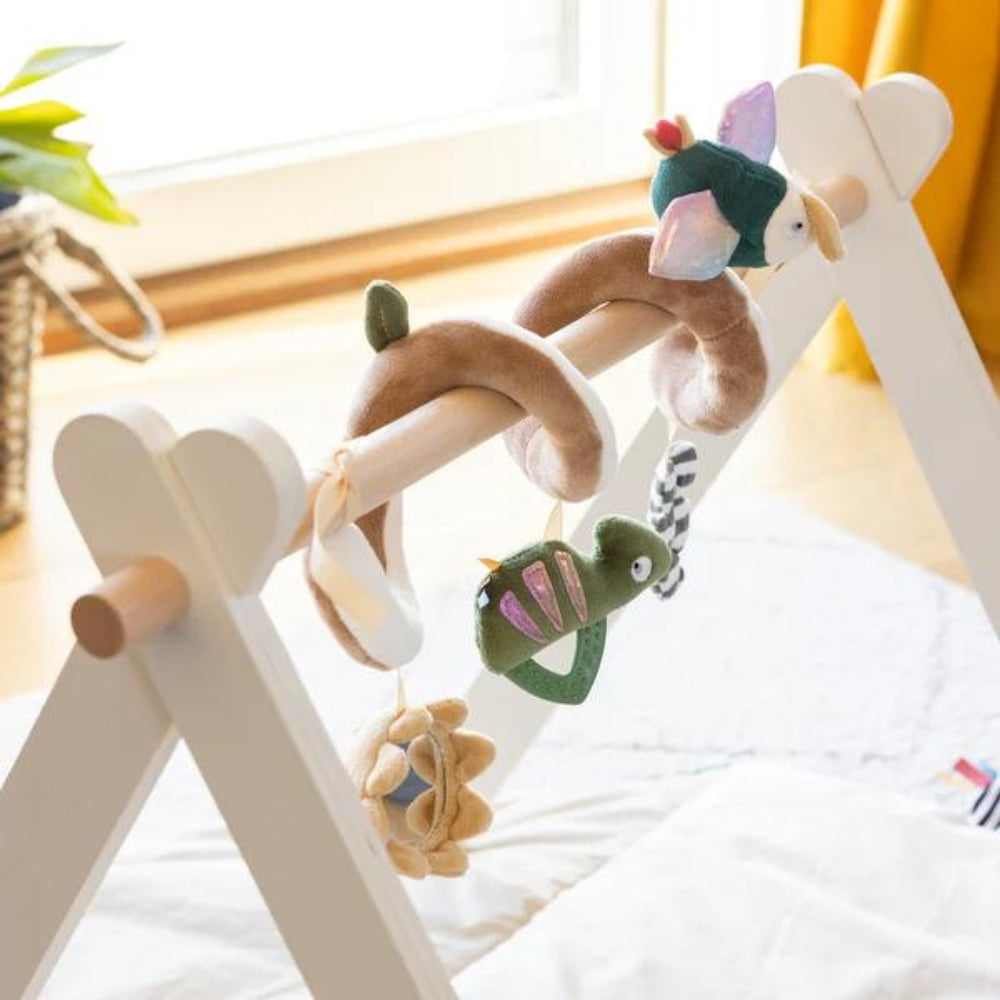 Den bløde barnevognsspiral er fyldt med søde former, forskellige teksturer og interessante lyde, der fanger småbørns opmærksomhed og giver masser af sjov legetid.