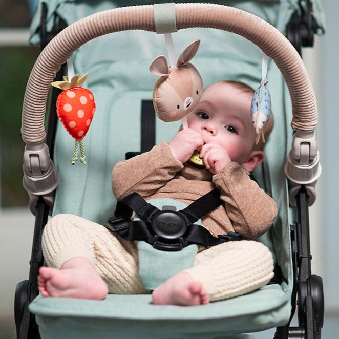 For en mere behagelig udendørs oplevelse og lettere forældrerolle anbefaler vi Taf toys barnevogns-hovedbånd.