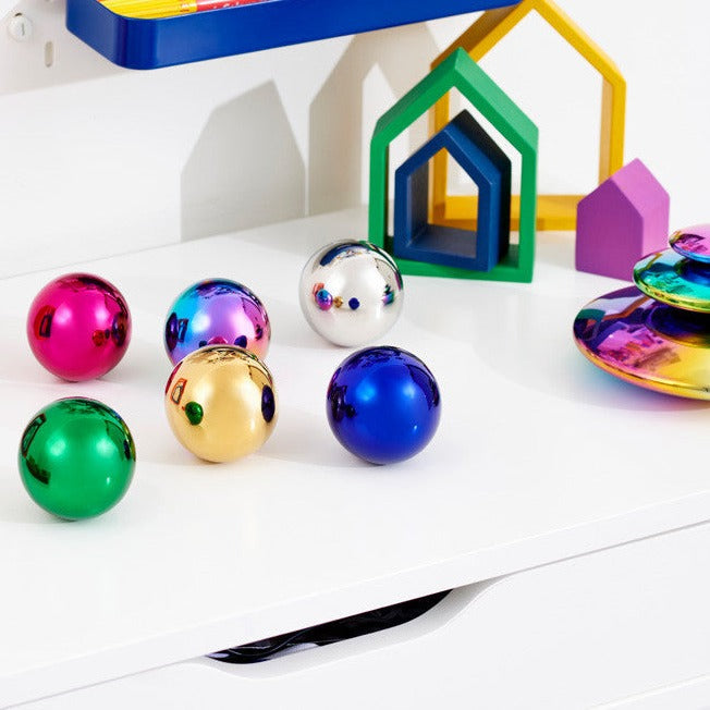 Robuste sensoriske kugler i rustfrit stål i 6 forskellige farver fra TickiT.