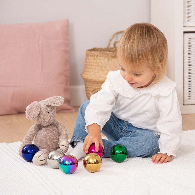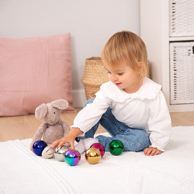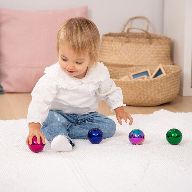 Rustfri stål sensoriske kugler fra TickiT er en god gaveidé til alle små børn.