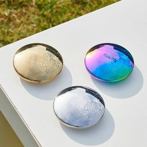 Metalkonstruktionen gør TickiT-mærkets sensoriske skiver reflekterende, meget holdbare og behagelige at røre ved.