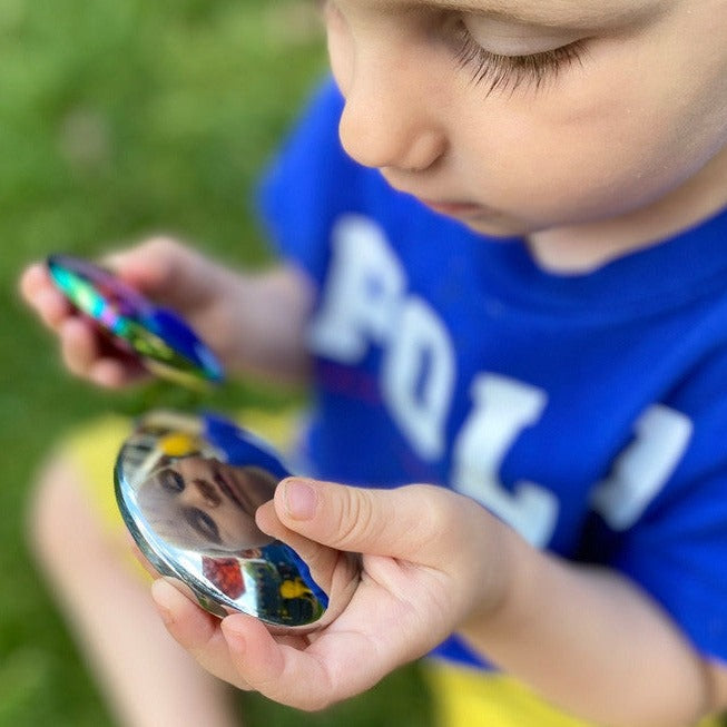 De håndlavede spejlblanke overflader giver en forvrænget fisheye-refleksion, som er fascinerende for børn.