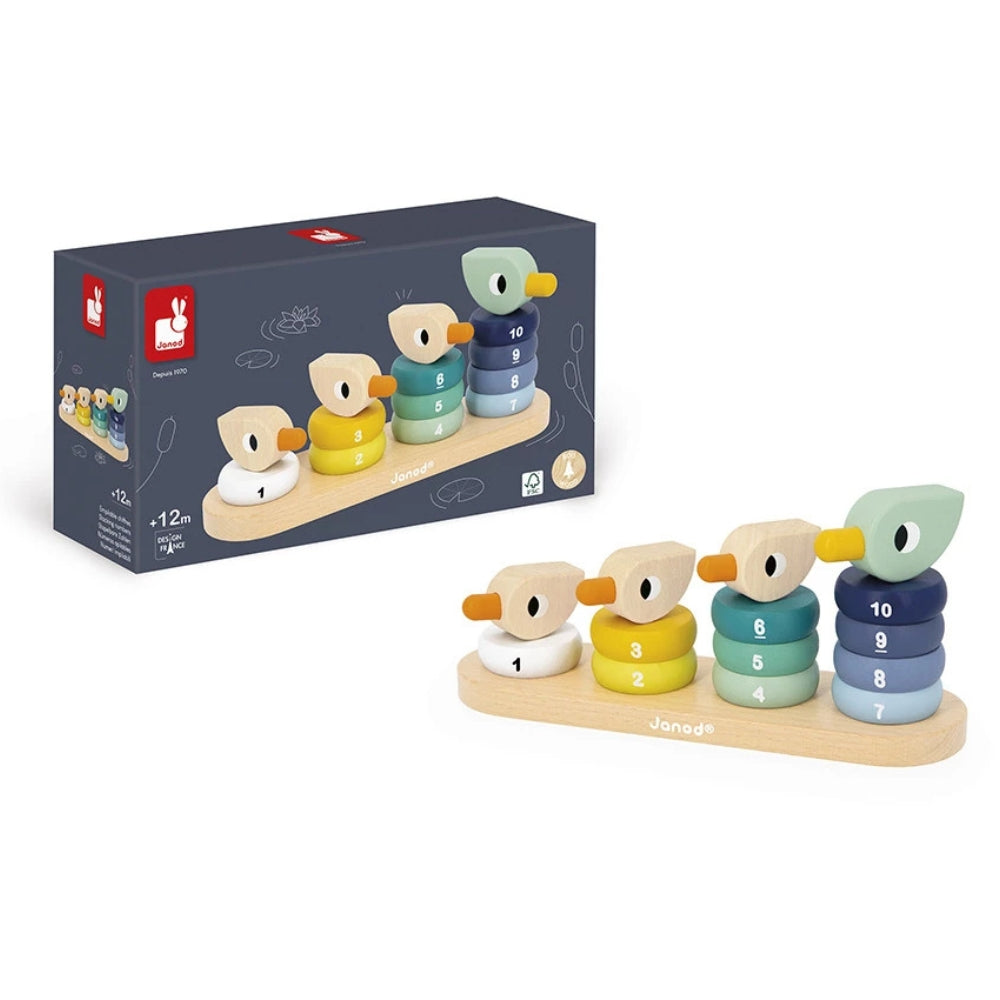 Janod-sættet giver dit barn mulighed for at stable og placere brikkerne på træpindene, samtidig med at det lærer at tælle fra 1 til 10.