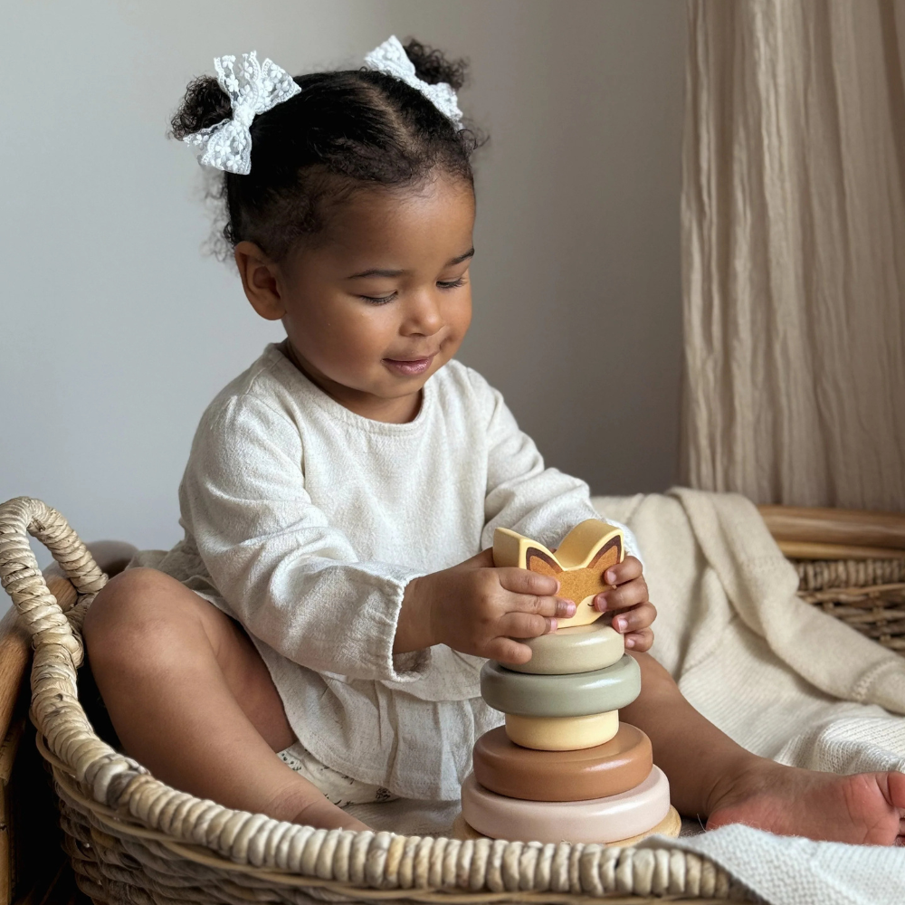 Stackaboo er et klassisk legetøj fra Mrs Ertha, der opmuntrer småbørn til at lege og lære.