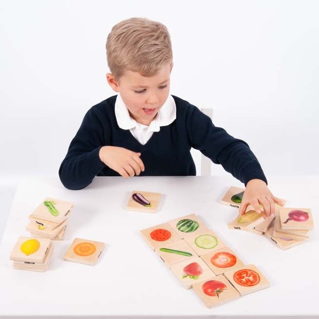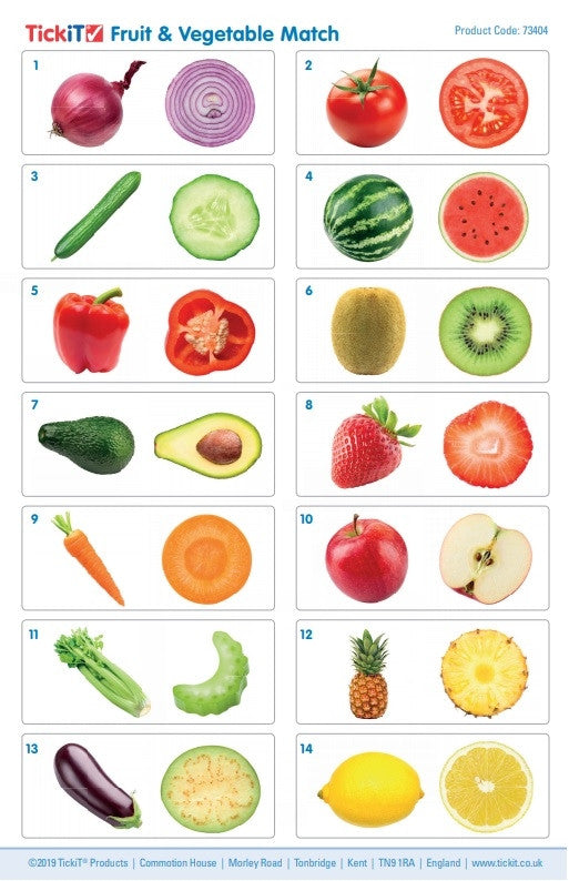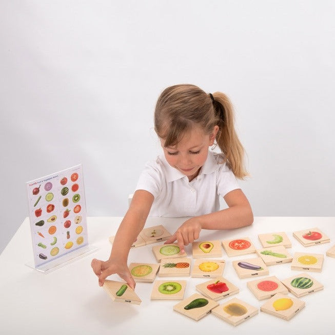 TickiT-puslespil til børn kan bruges til at matche eller til hukommelsesspil eller til at sortere fødevaregrupper, f.eks. efter farve, sort, konsistens, smag osv.
