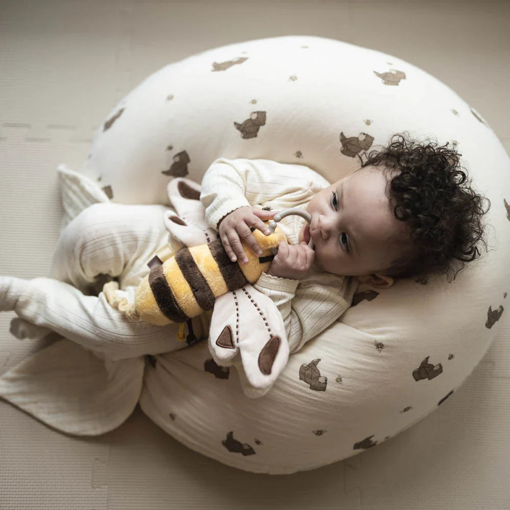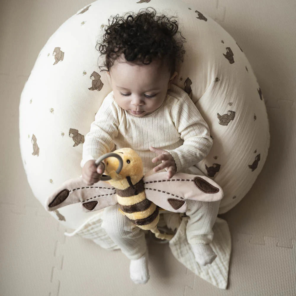 Aggi Bee er lavet af bløde, taktile materialer, hvilket gør den sikker og behagelig for små børn.