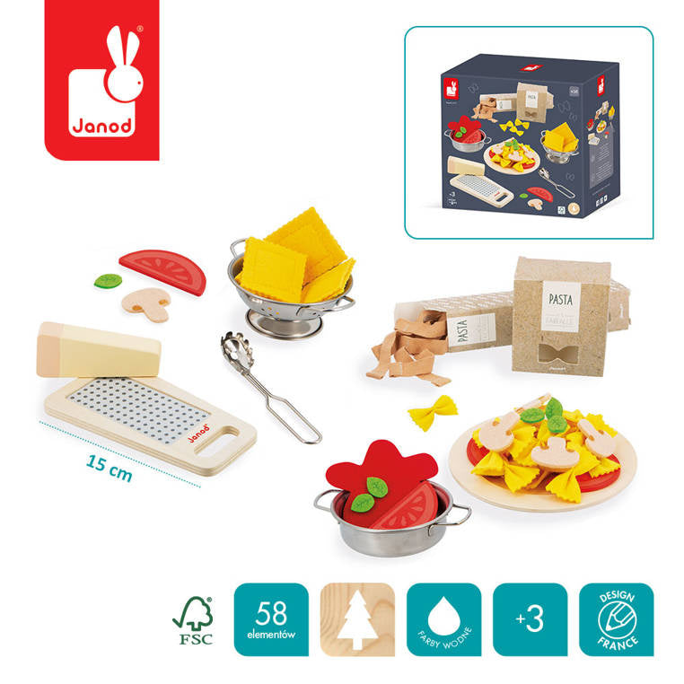 Det italienske pastasæt fra det franske mærke Janod er det perfekte legetøj til små madentusiaster.