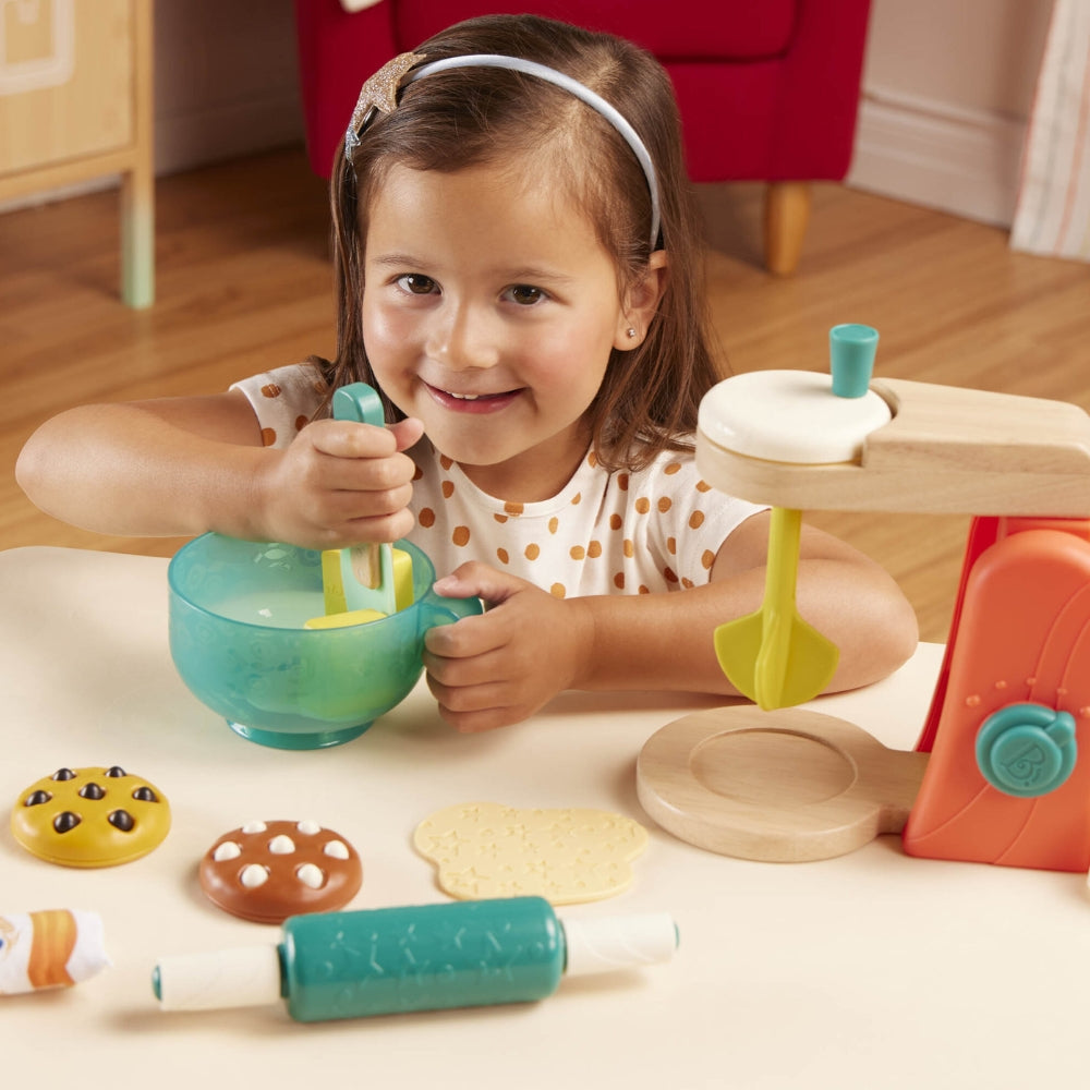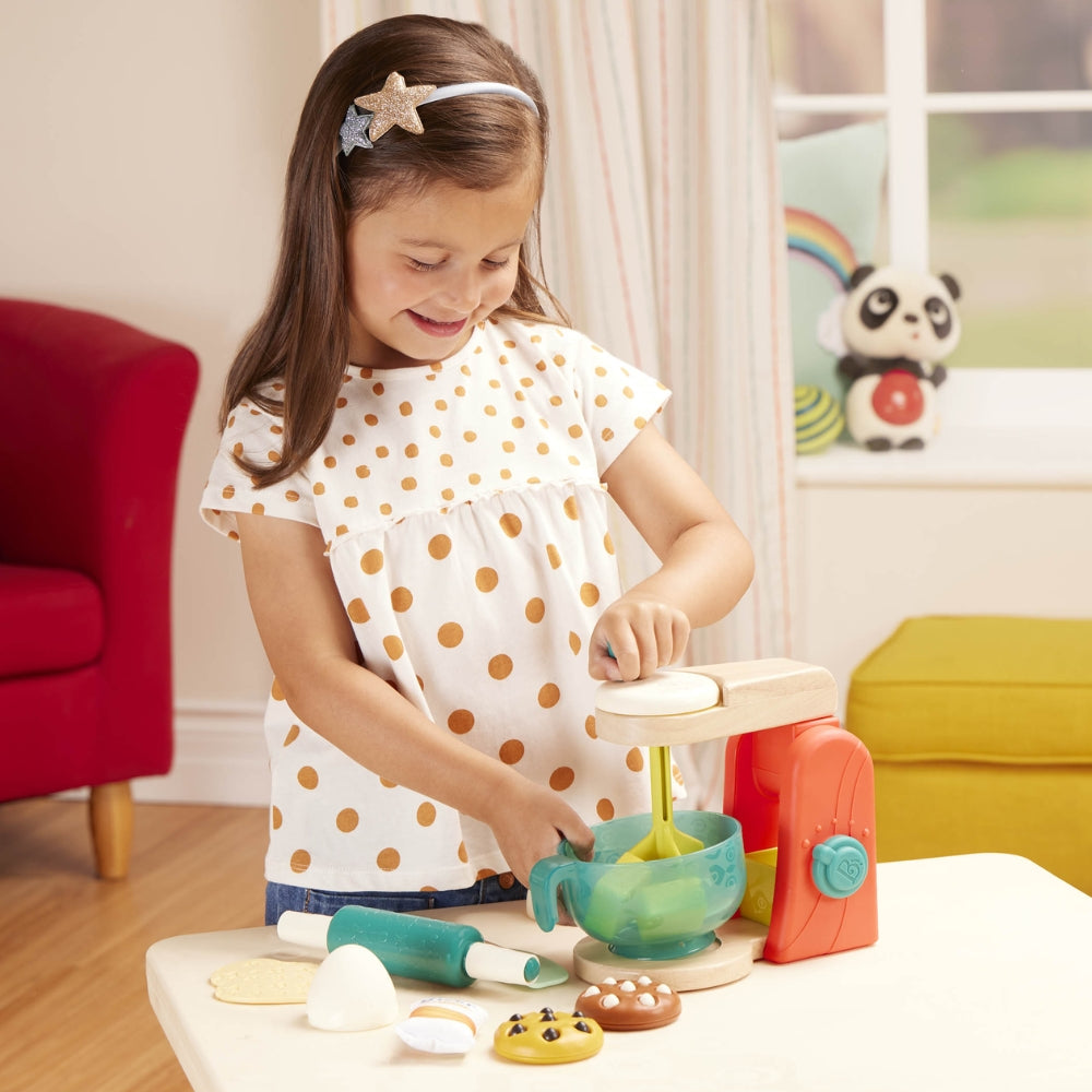 B.Toys-mixeren er udstyret med bageudstyr og ingredienser og giver mulighed for kreativ leg, der udvikler dit barns fantasi og manuelle færdigheder.