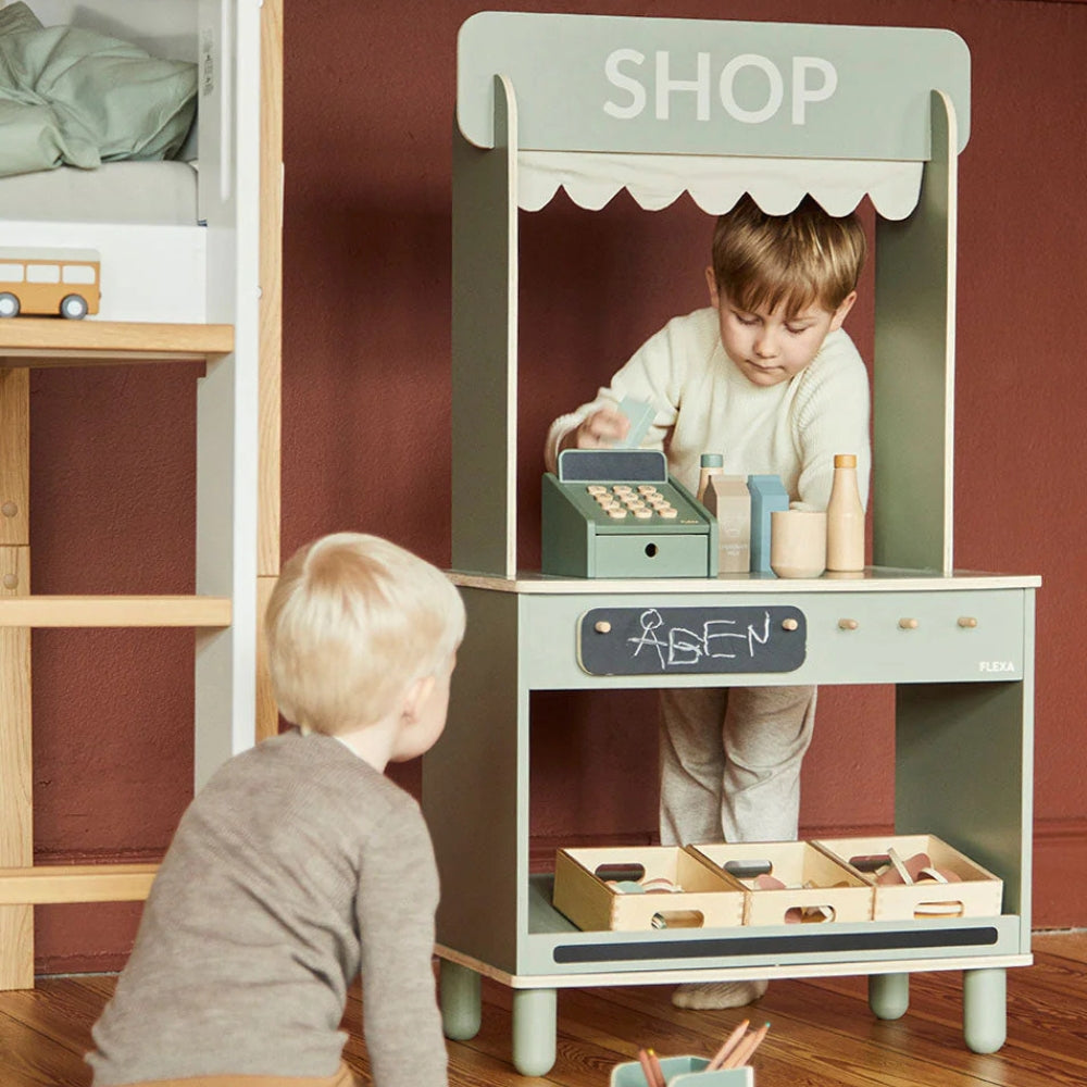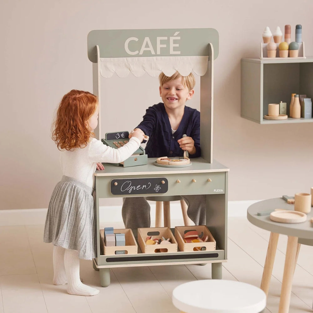 Dette yndige butik- og cafésæt fra Flexa er det perfekte supplement til dit barns kreative leg.