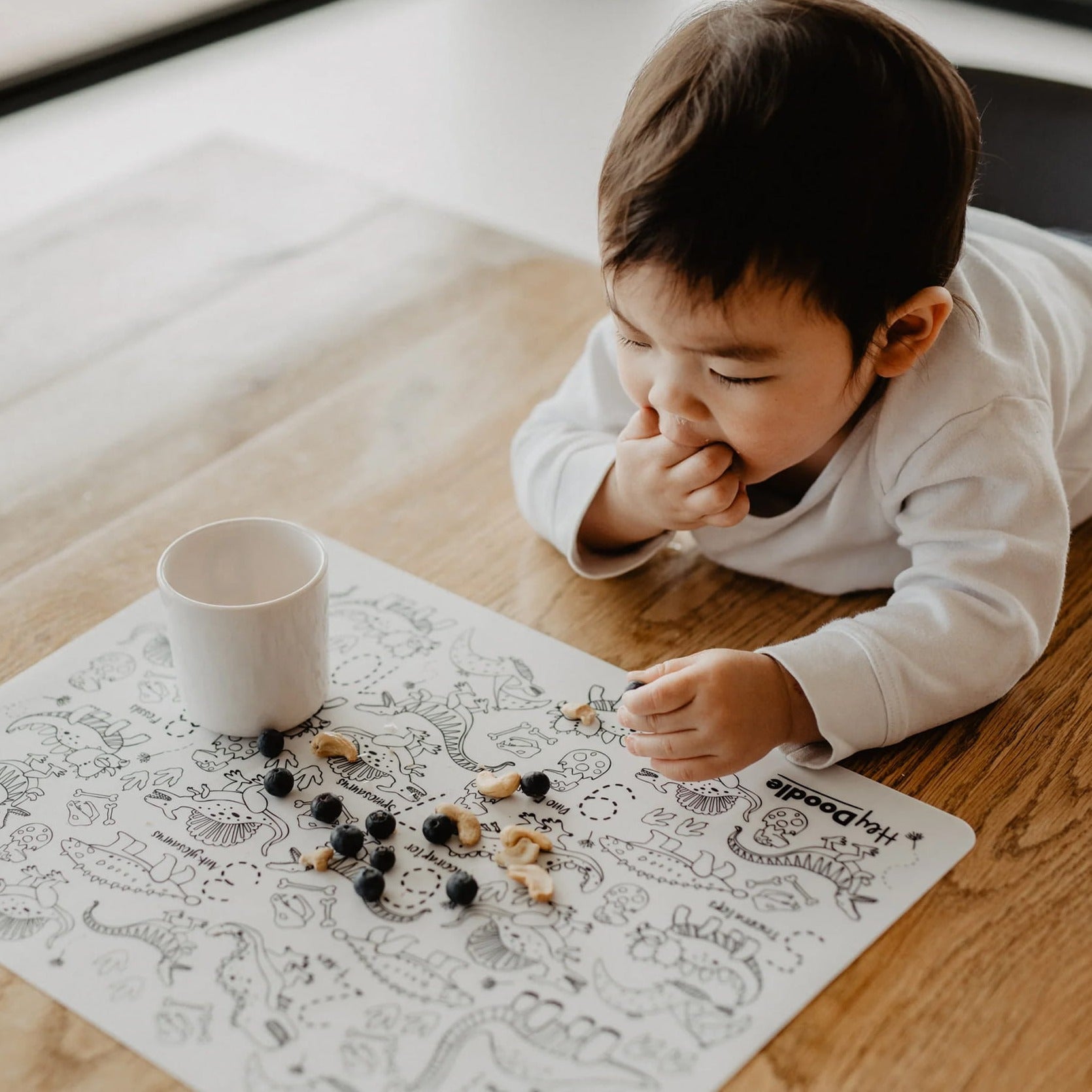 HeyDoodle-silikonemåtten kan også bruges som madmåtte, hvilket gør den til et alsidigt tilbehør til hjemmet og rejser.