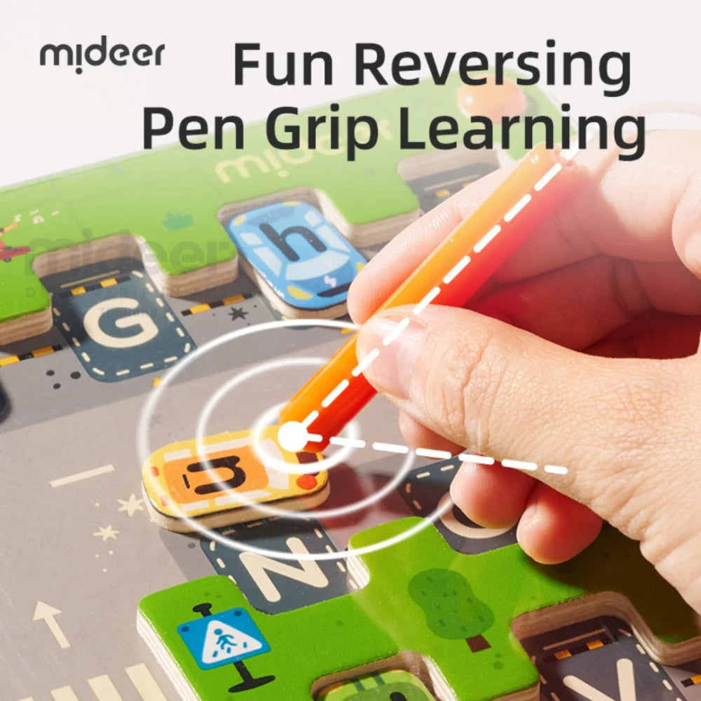 Dette kreative sæt giver småbørn mulighed for at øve deres øje-hånd-koordination og lære alfabetets bogstaver gennem det sjove ved at parkere biler.