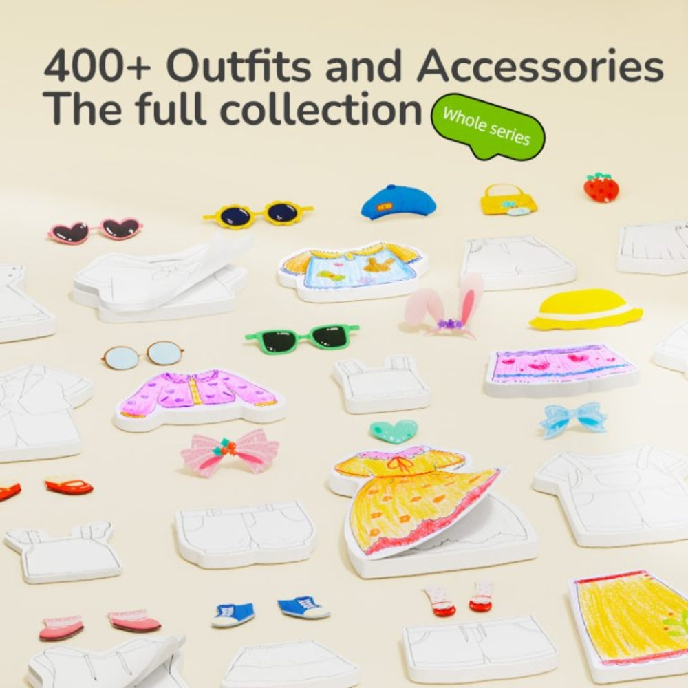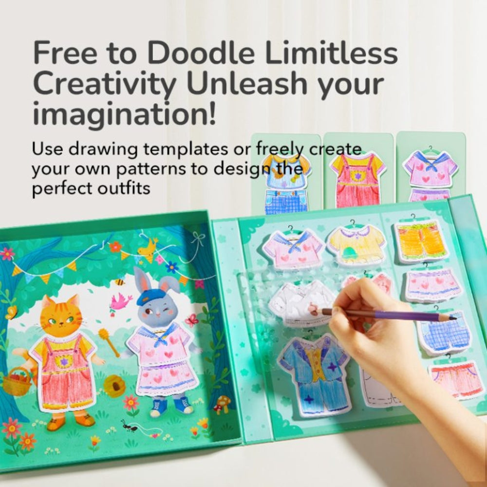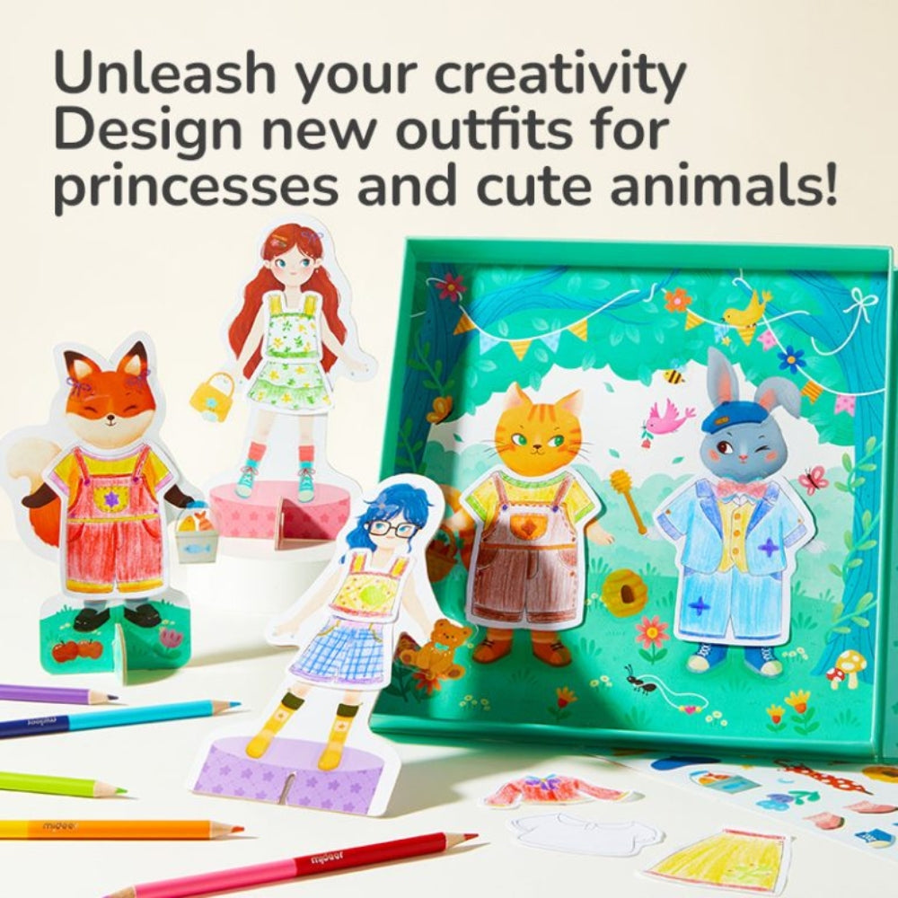 Sættet giver dig mulighed for at designe tøj ved hjælp af post-it-sedler, så hvert barn kan lege modeskaber og designe kreationer, der er Paris' catwalks værdige.